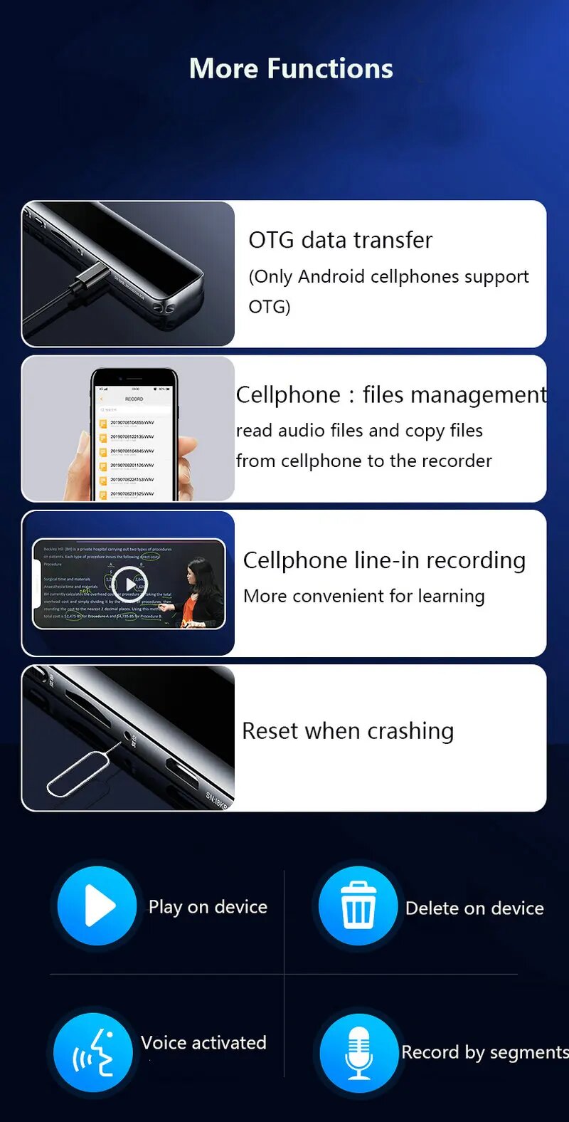 Портативный диктофон V39 с голосовой активацией, mp3-плеер с двойным дуговым микрофоном и функцией телефонной записи, диктофон