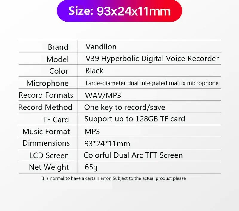 Ниже Вы можете прочитать отзывы на Vandlion V39 Цифровой диктофон, Черный, 32 Гб, ознакомится с подробными характеристиками, посмотреть интересные обзоры и фотографии на Vandlion V39 Цифровой диктофон, Черный, 32 Гб.