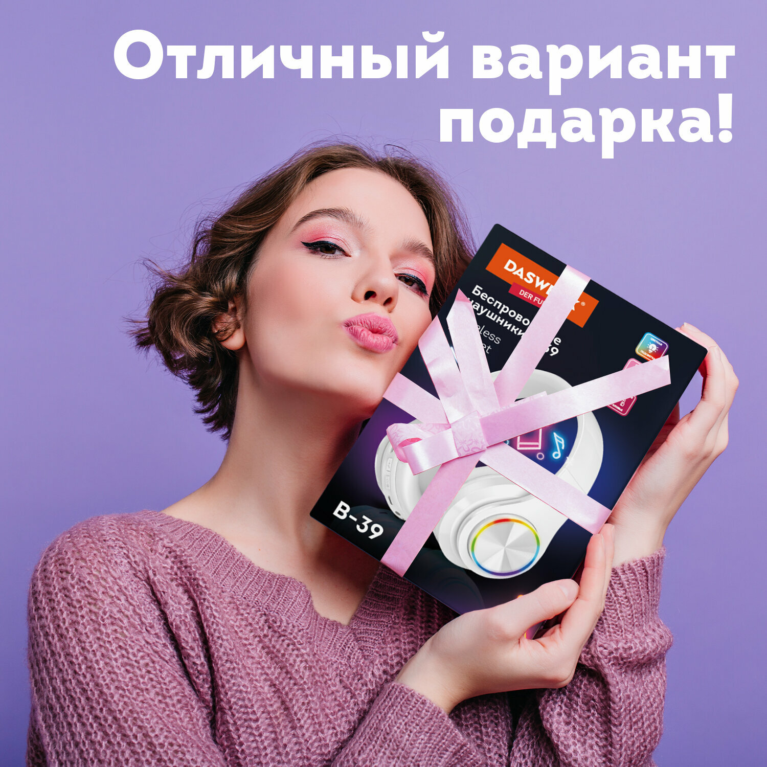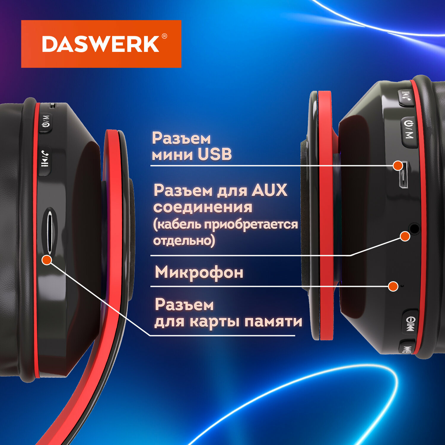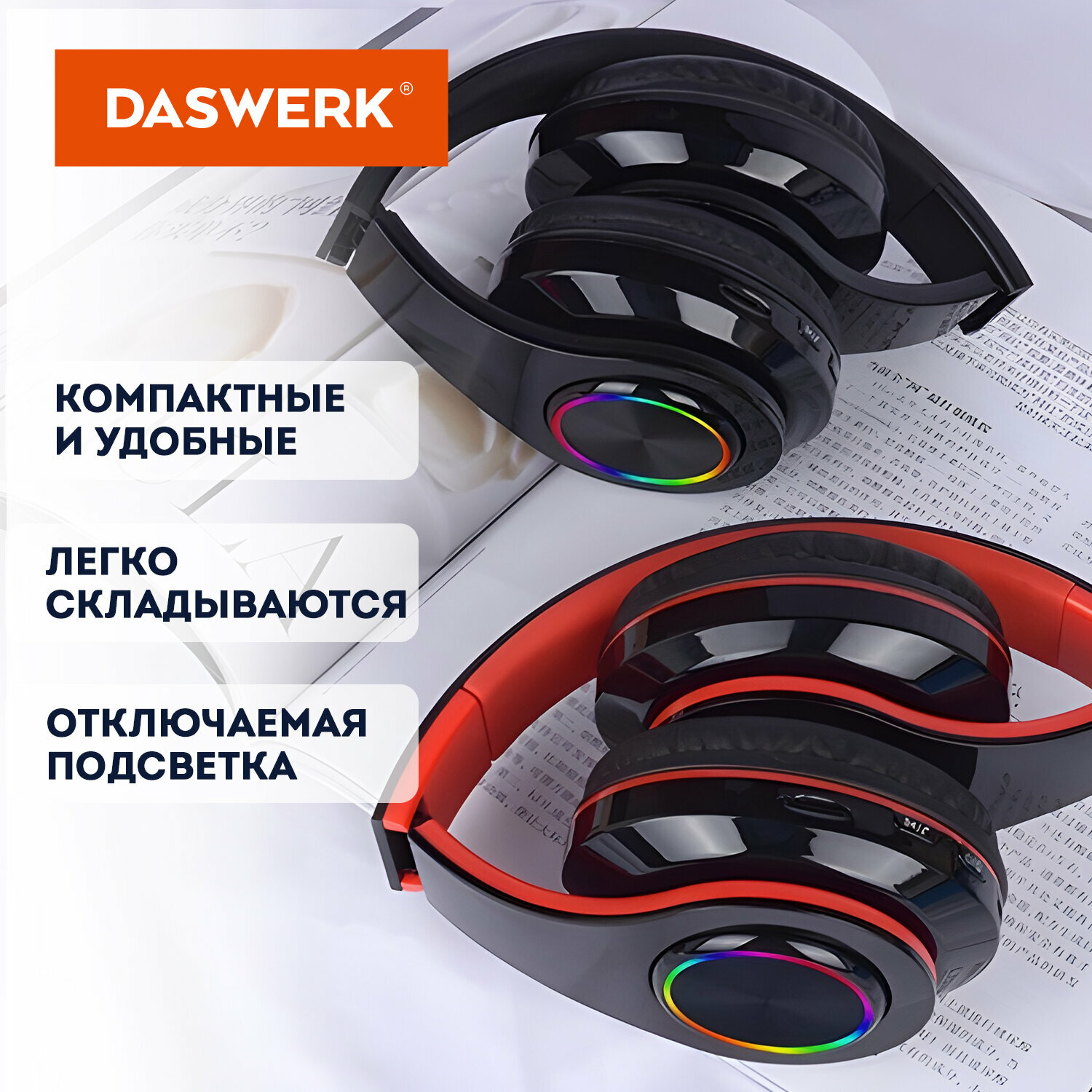 Наушники беспроводные большие светящиеся накладные, красные DASWERK B-39
