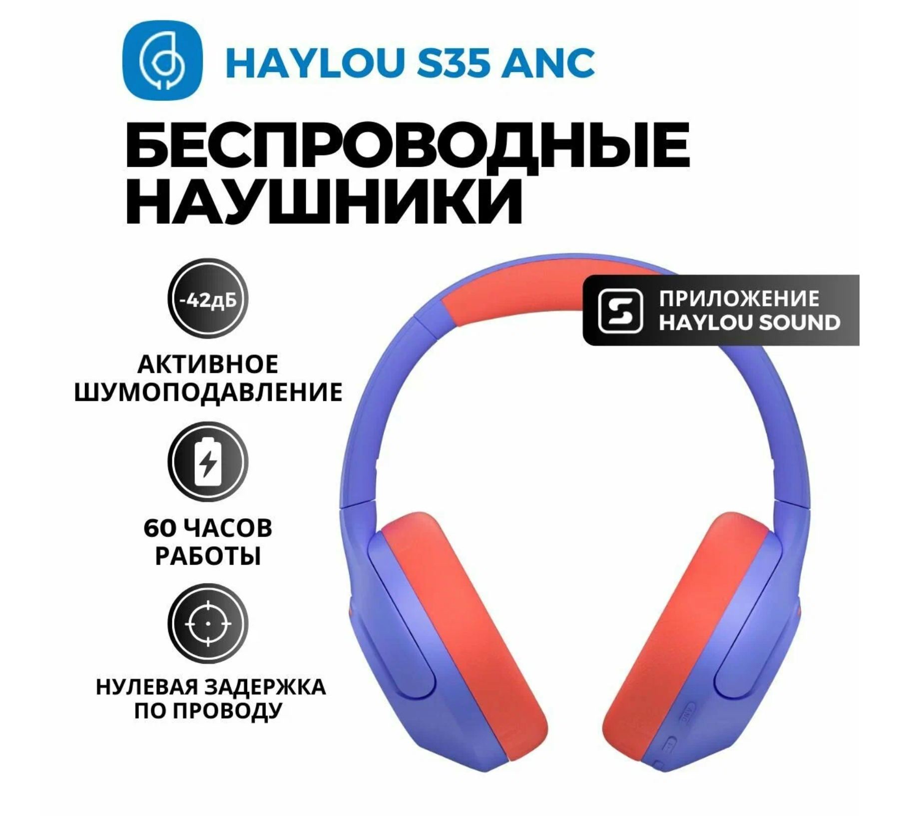 Купить Наушники Xiaomi Haylou S35 ANC / Беспроводные наушники / Новинка от Xiaomi / Violet Orange
