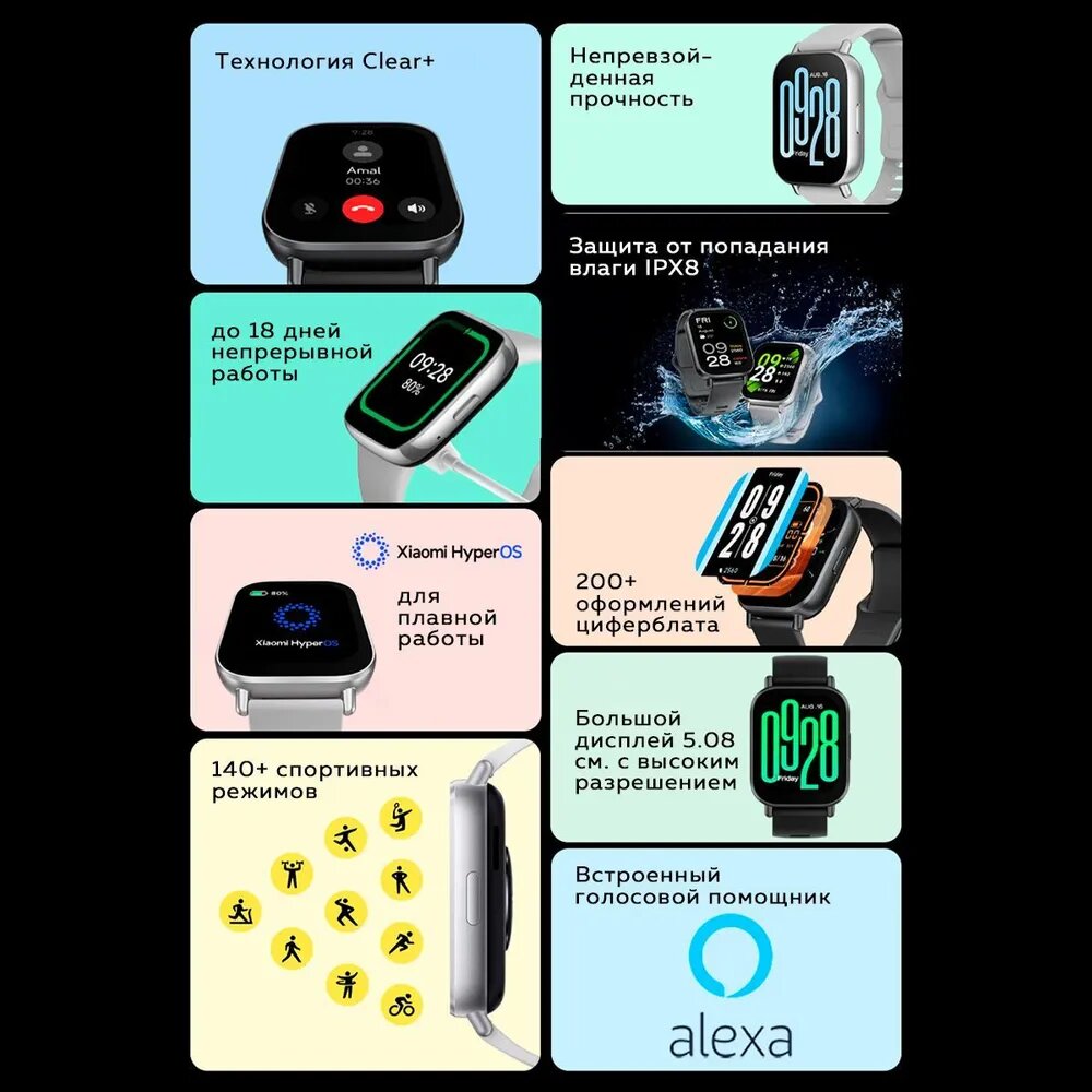 Смарт-часы Xiaomi Redmi Watch 4, Obsidian, AMOLED, для Android/iOS