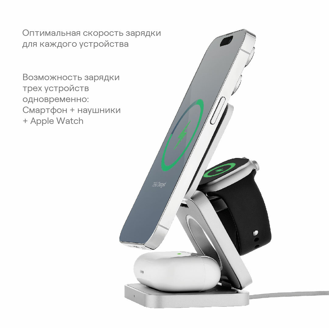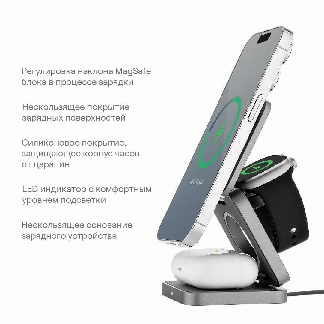 Беспроводное зарядное устройство uBear Balance 3 в 1, MagSafe, 25 Вт, серый (WL09SG31-ADM)