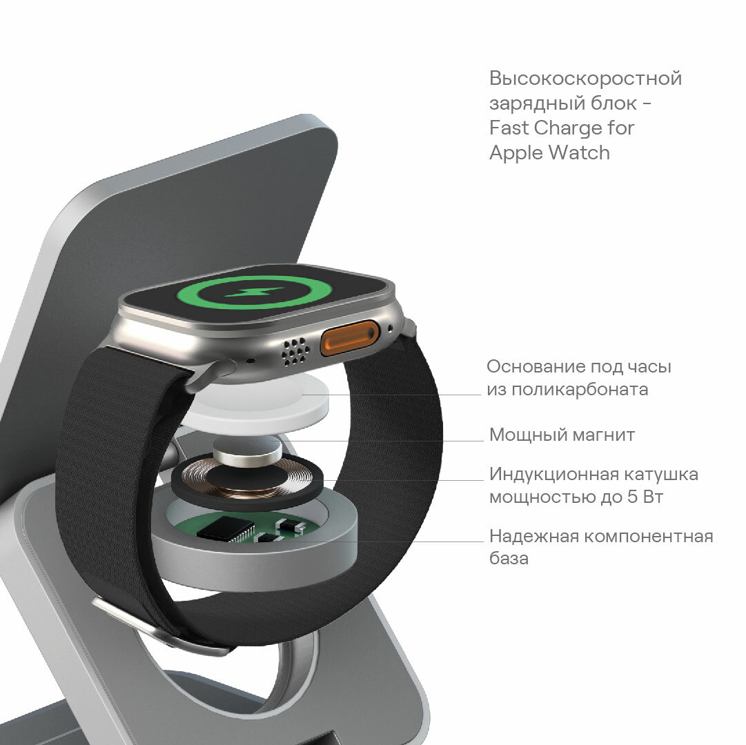 Купить Док-станция беспроводной зарядки uBear Balance 3-в-1 для Apple Watch 25Вт, цвет серый