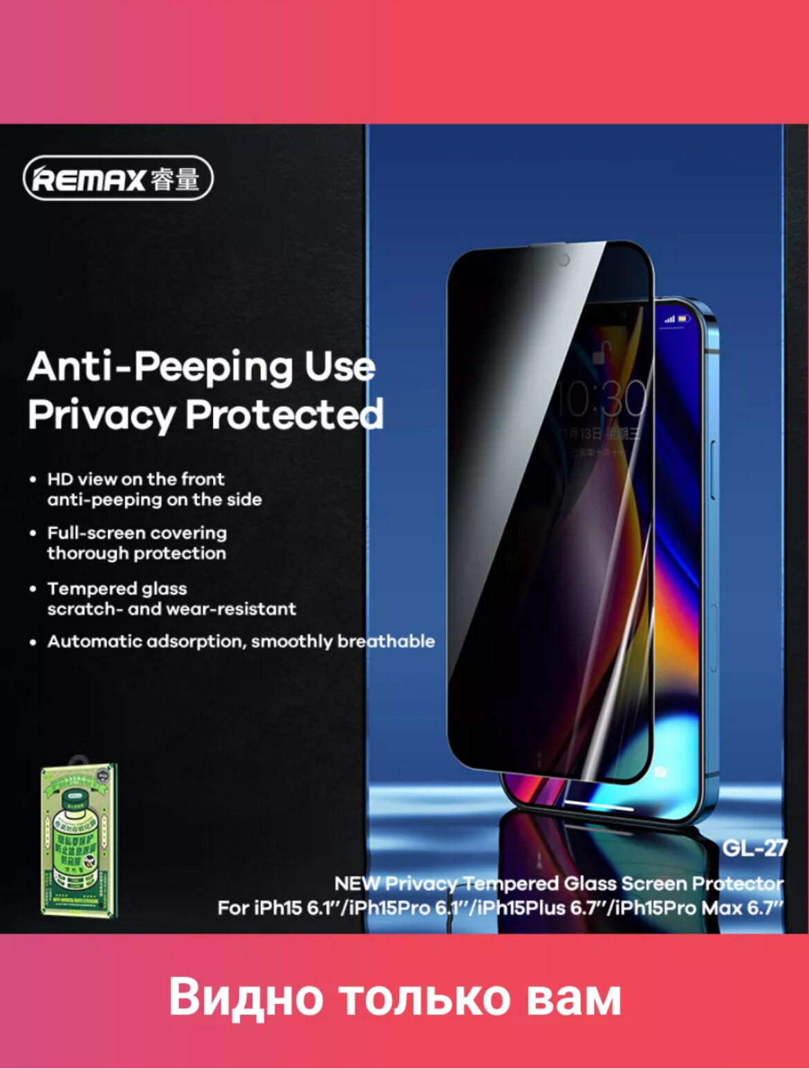 СохранитьЗащитное стекло Айфон 16/15 Remax, для iPhone 15/16, 3D, антишпион, глянцевое, олеофобное, черное интересное: