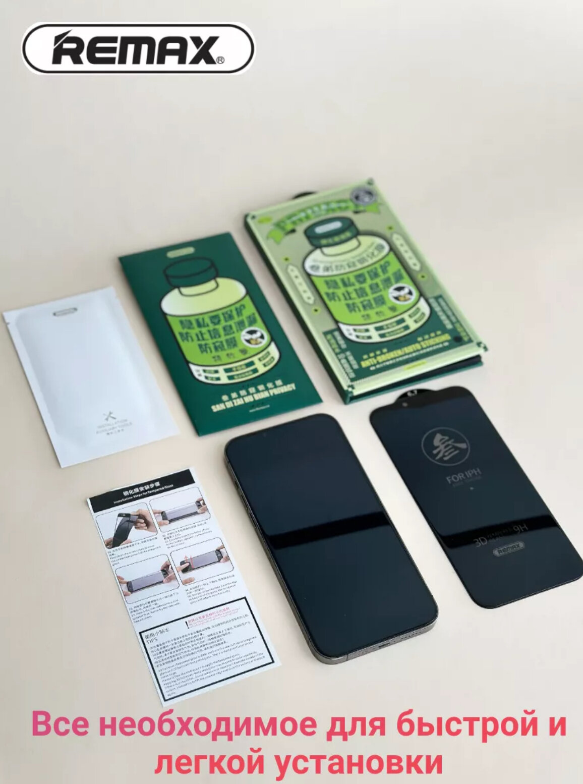 | Подробная комплектация | 1. Защитное стекло для iPhone Remax GL-27 2. Спиртовая салфетка 3. Салфетка из микрофибры 4. Стикеры для удаления пыли 5. Инструкция по наклеиванию 6. Надежная упаковка |