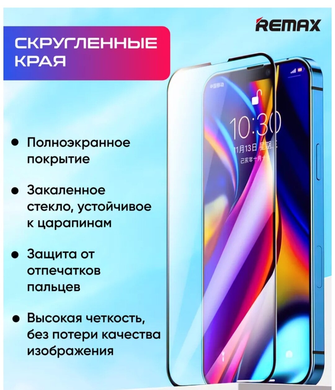 Защитное стекло iPhone 14 Pro Remax / стекло на айфон ремакс синий