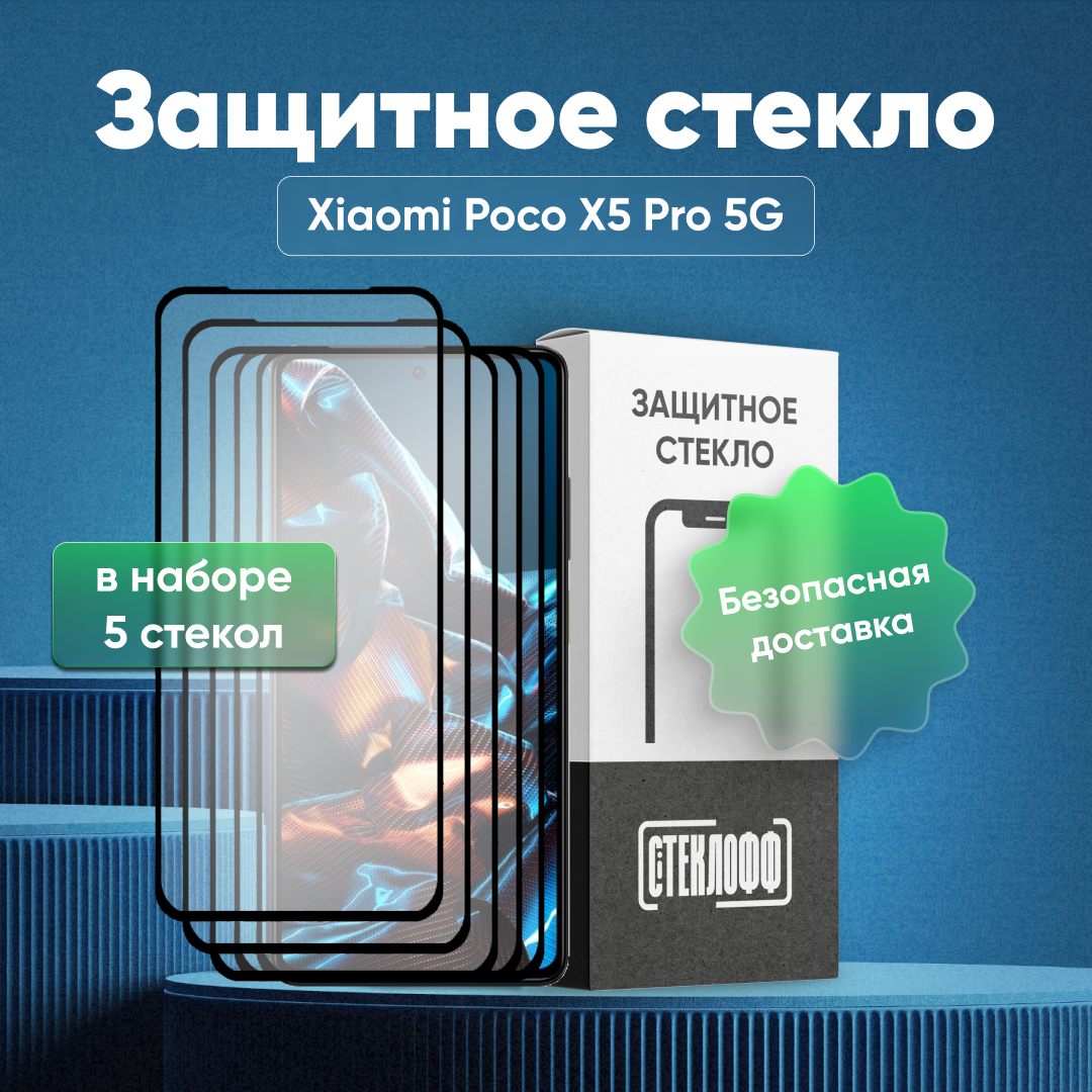Купить Набор защитных стекол для Xiaomi POCO X5 Pro 5G c полным покрытием, серия Стеклофф Base, 5 шт