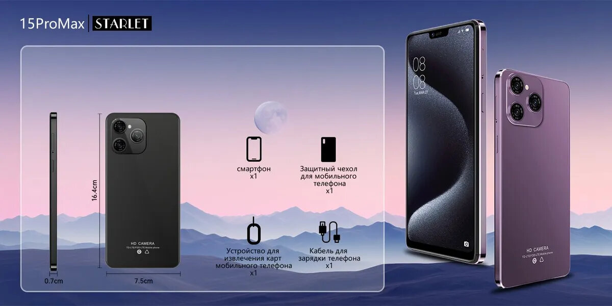 смартфон STARLET 15 PRO MAX 128 ГБ, Dual nano SIM, Пурпурный смартфон