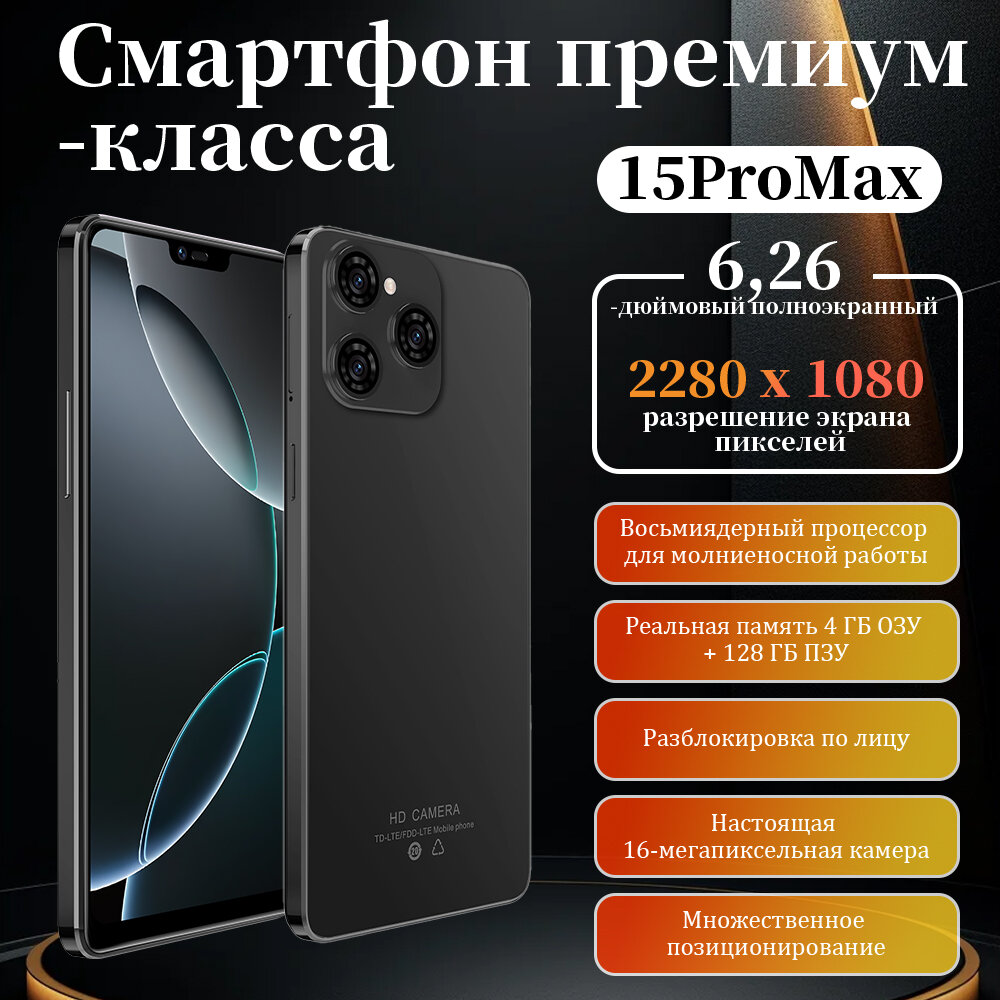 Купить STARLET смартфон 4/128 ГБ 15 PRO MAX , черный Мобильные телефоны, Разблокировка по лицу,2280*1080, Smart phone