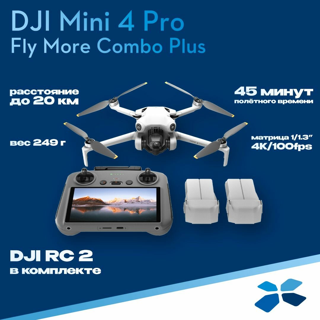 Купить Квадрокоптер DJI Mini 4 Pro Fly More Combo Plus с пультом DJI RC 2