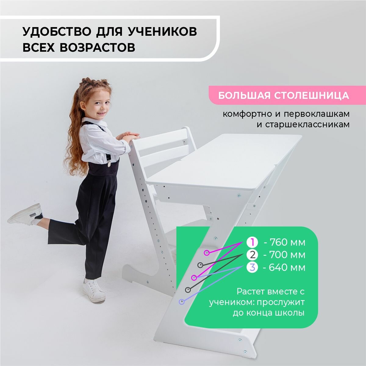 Парта для школьника растущая Конек Горбунек Макси, белая интересное: