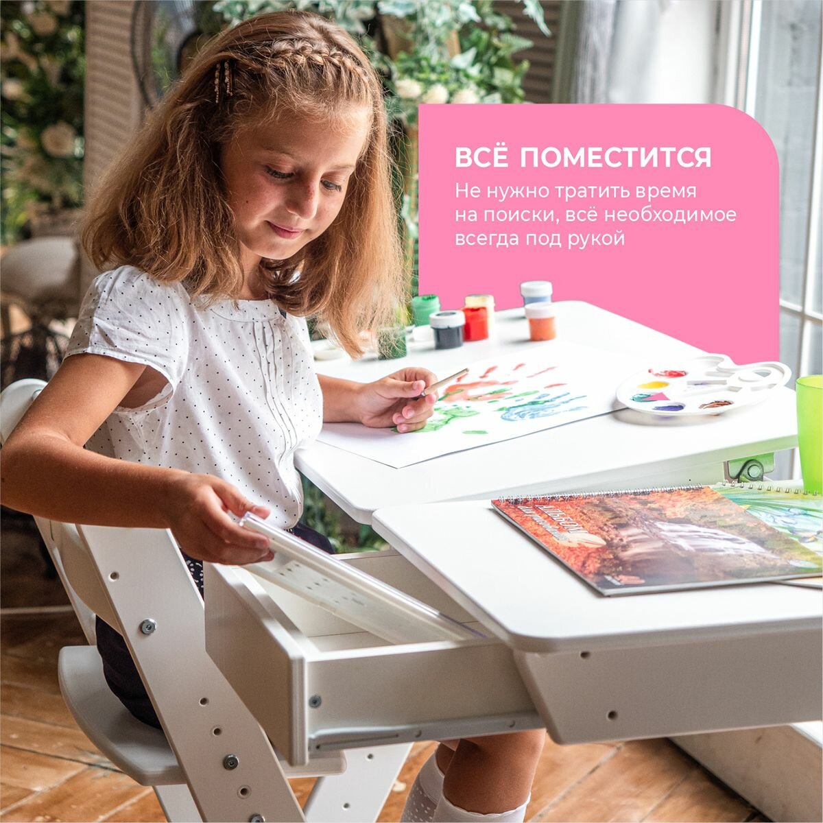 Растущая парта Макси, цвет Белая