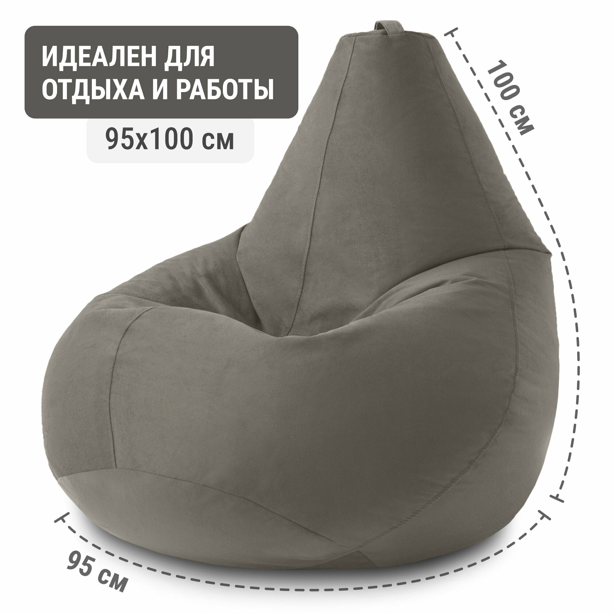 Кресло-мешок Груша, MyPuff,размер XXXХL-Комфорт, мебельный велюр, серый