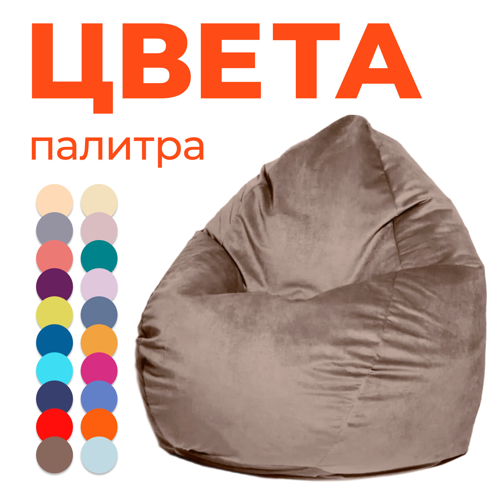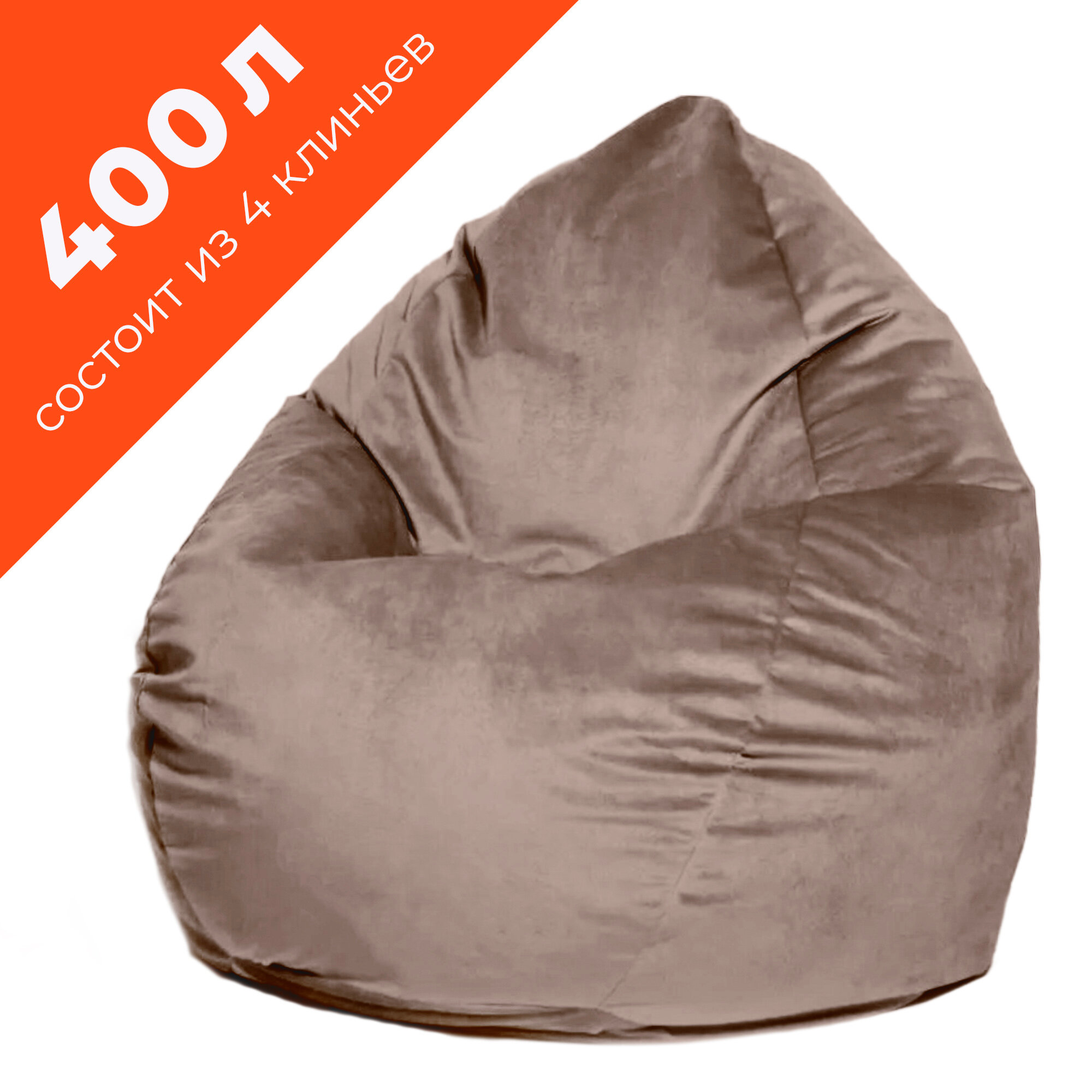 Кресло-мешок игровое WOWPUFF "МАКСИ", XXXXL, велюр, съемный чехол, наполнитель пенополистирол