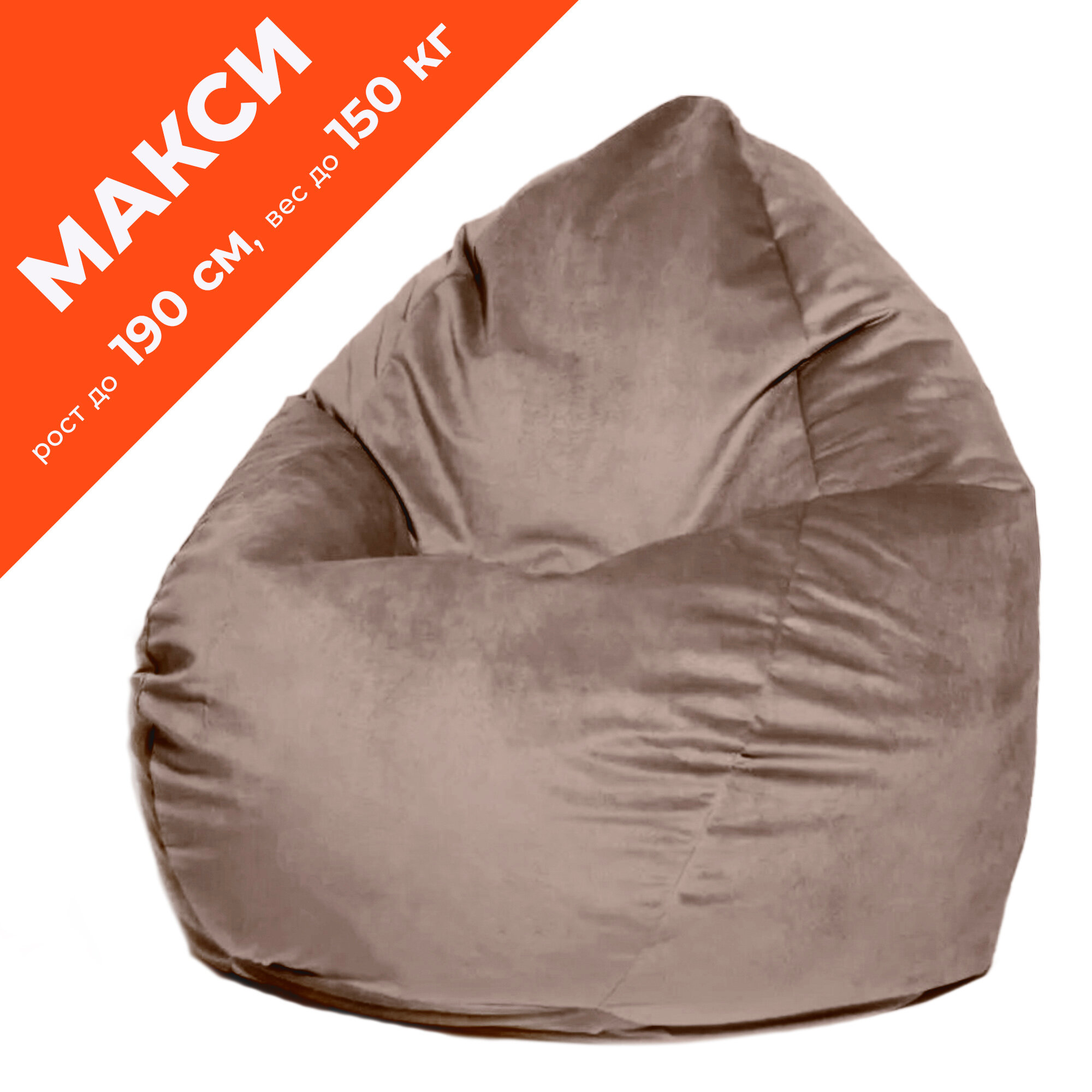 Купить Кресло-мешок игровое WOWPUFF "Макси" XXXXL, велюр, съемный чехол, цвет коричневый, нагрузка 150кг