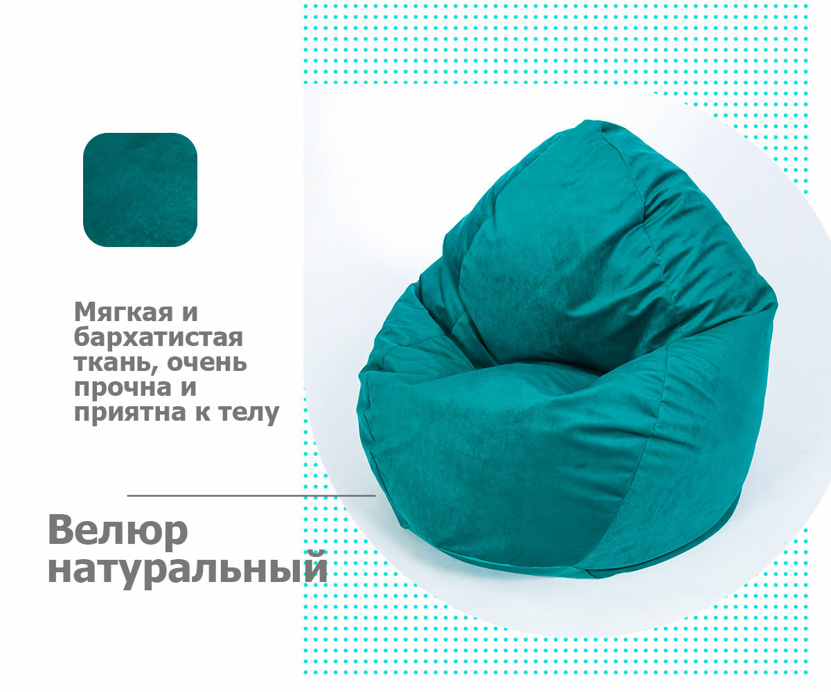 Кресло-мешок игровое WOWPUFF "МАКСИ", XXXXL, велюр, съемный чехол, наполнитель пенополистирол