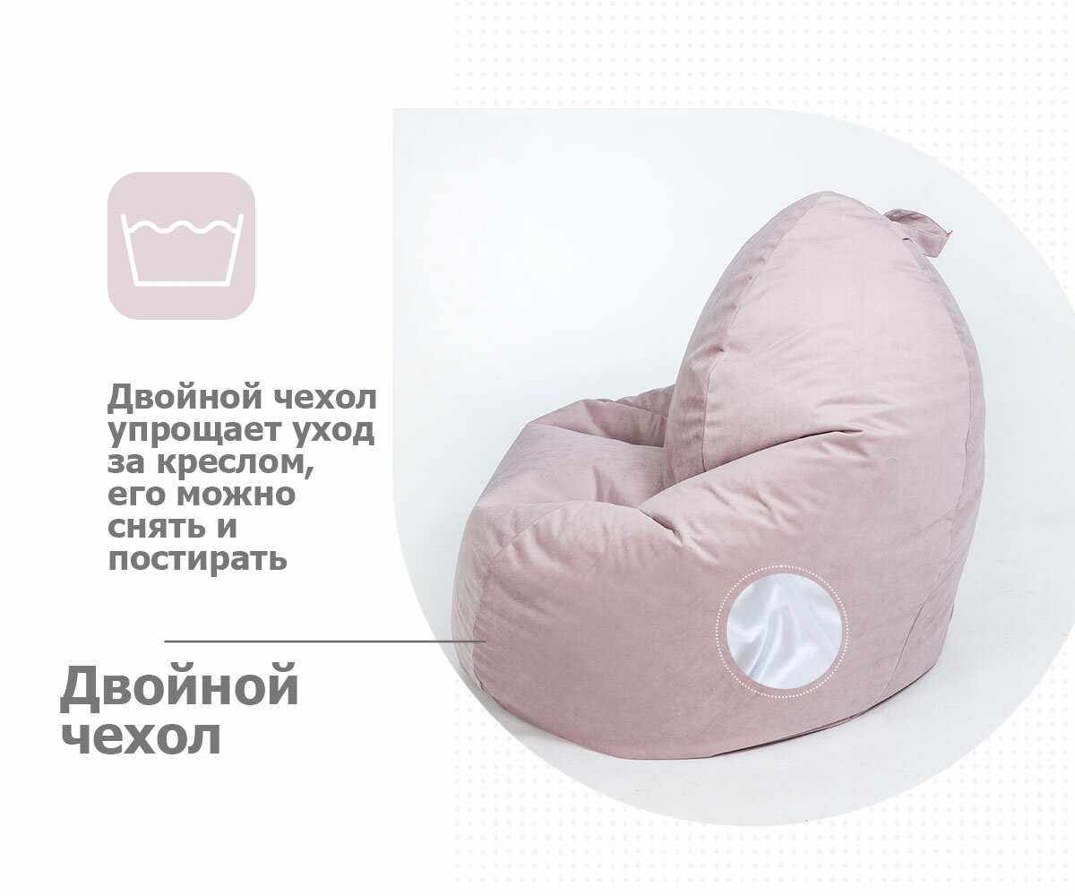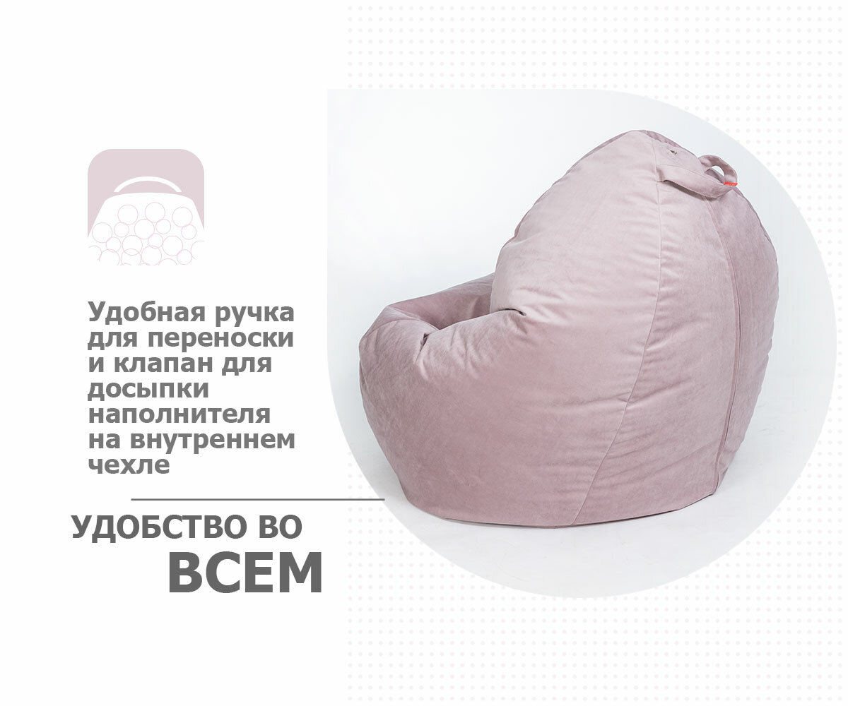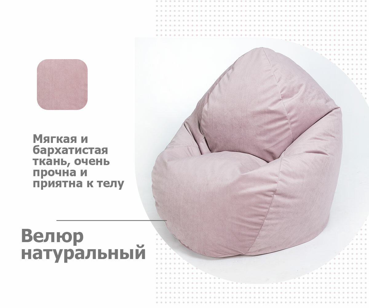 СохранитьКресло-мешок игровое WOWPUFF "МАКСИ" XXXXXL велюр пыльная роза, съемный чехол интересное: