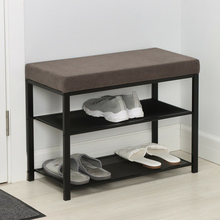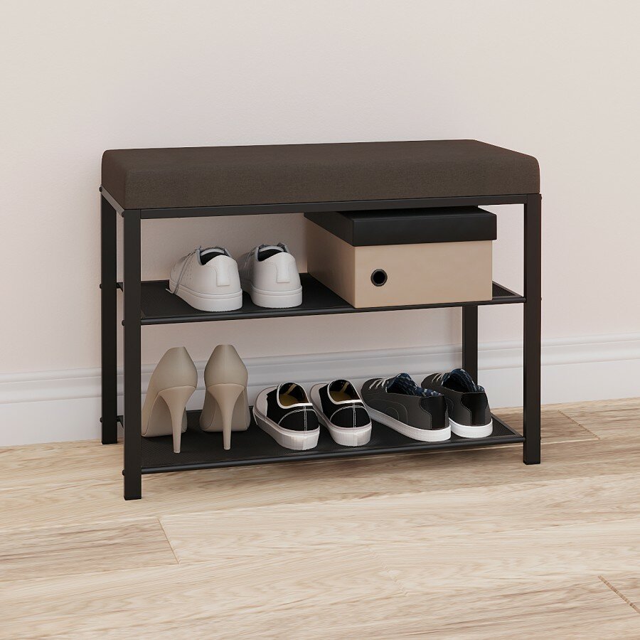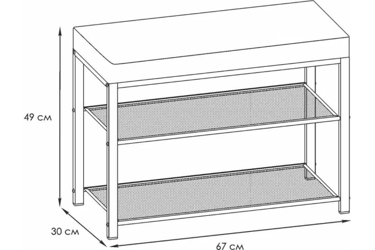 Банкетка для обуви ЗМИ Торонто 23S, 2 полки с мягким сиденьем, 67х30х49см, каркас графит БТ23СГрС