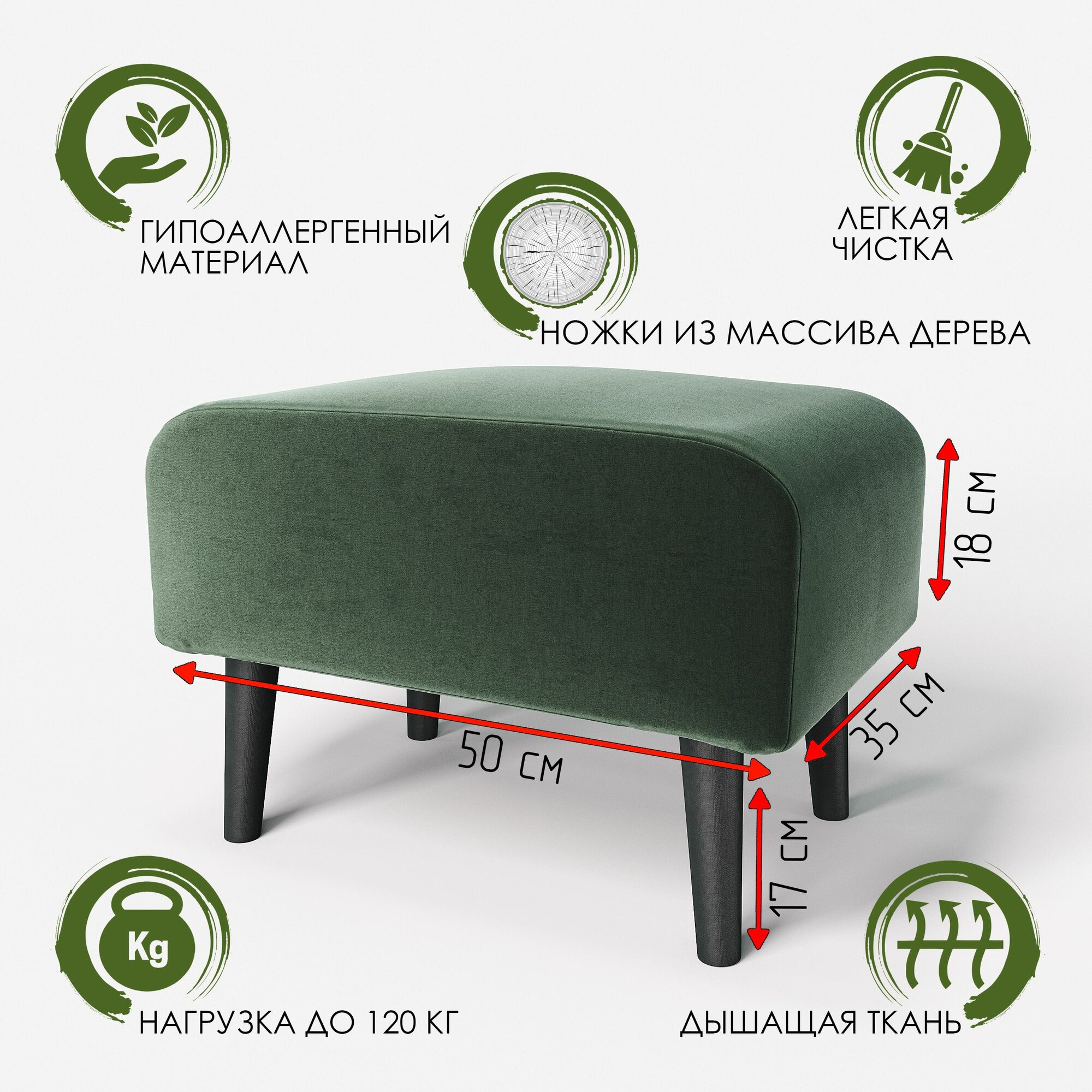 Пуф банкетка на высоких ножках Фантазёр Z-8 зелёный в офис, салон красоты, прихожая, гостиная, в кафе, в зону ожидания, к туалетному столику.