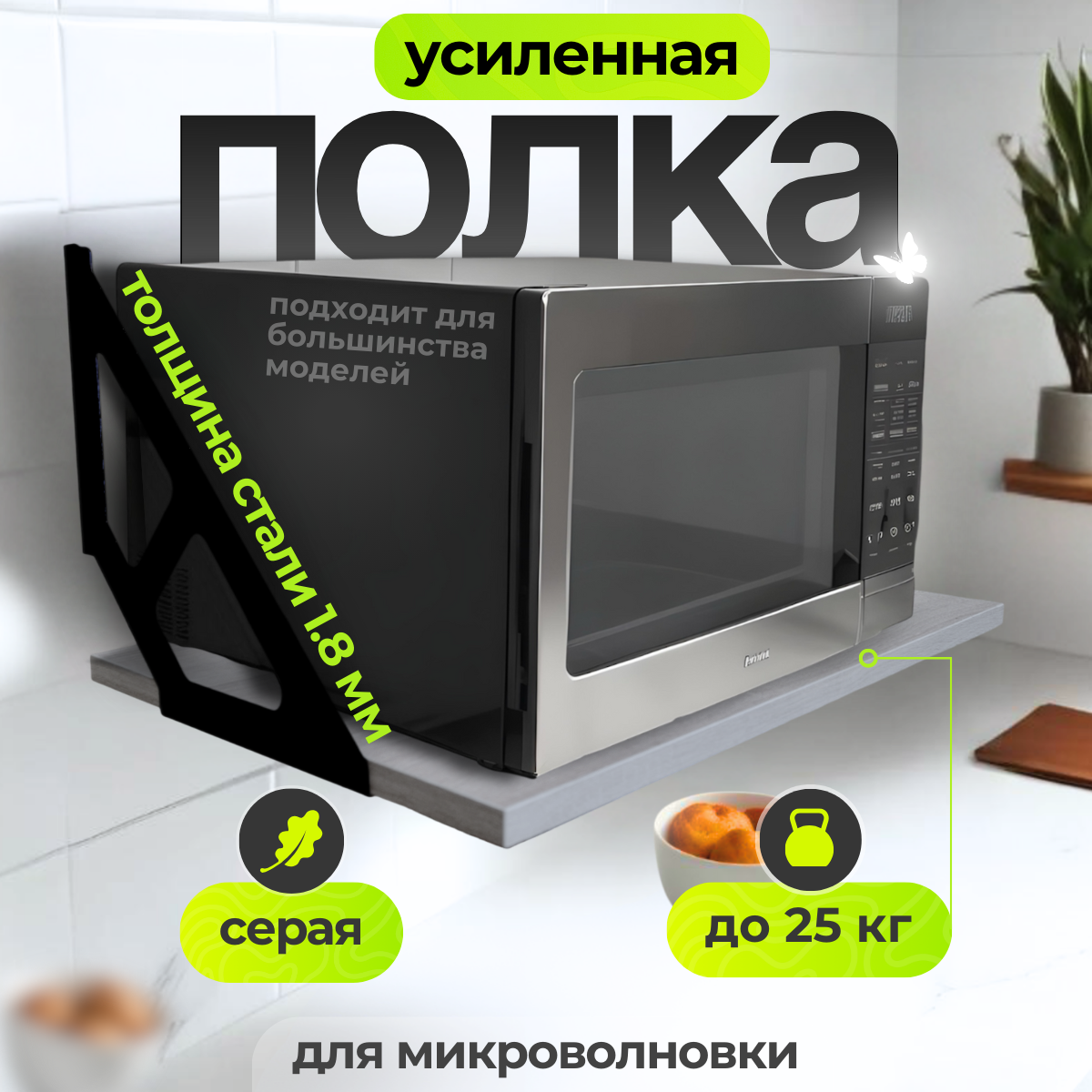 Полка настенная навесная для микроволновки на кухню
