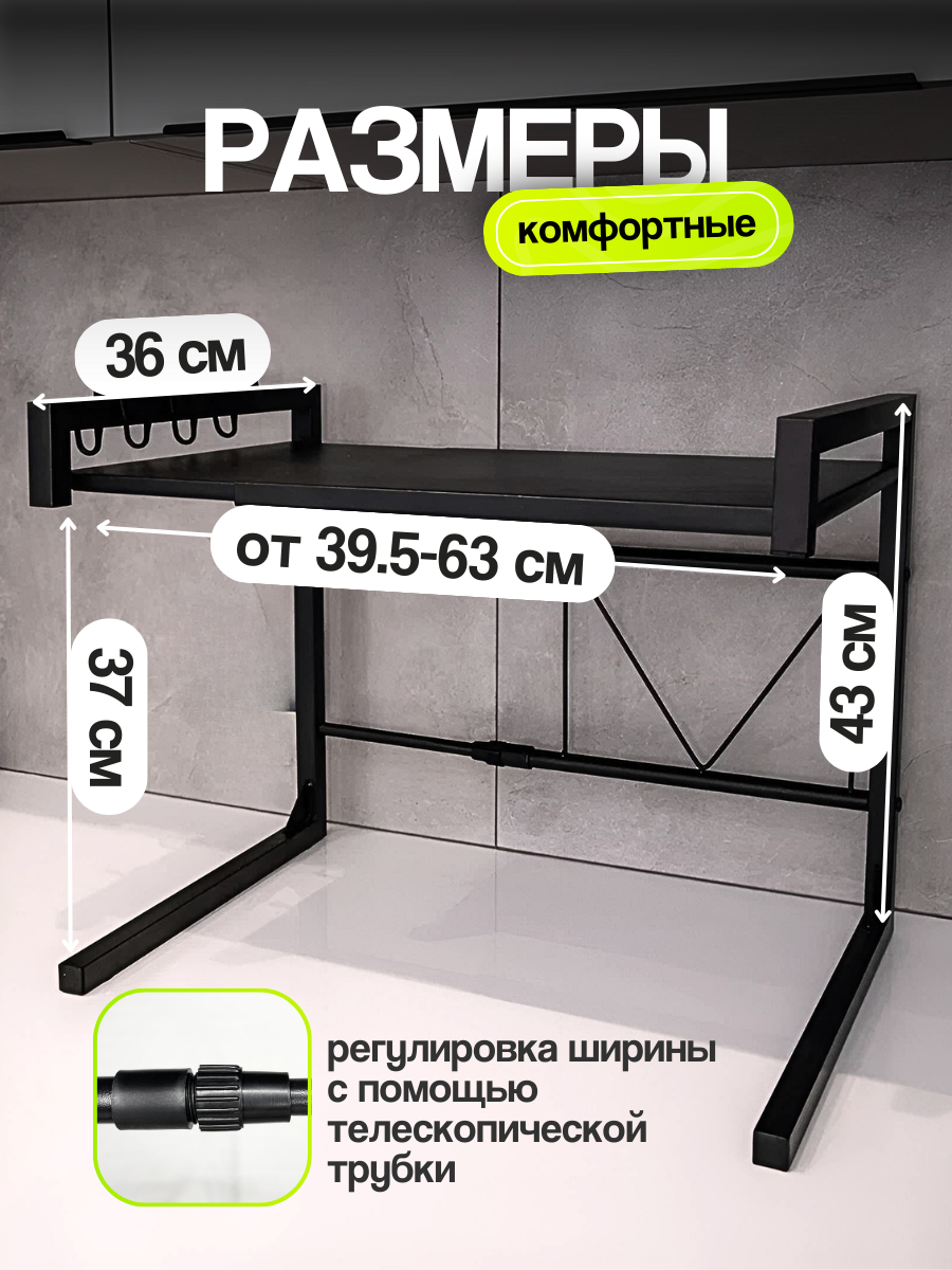 Полка навесная для микроволновой печи на кухню Uniqhouse цвет Черный