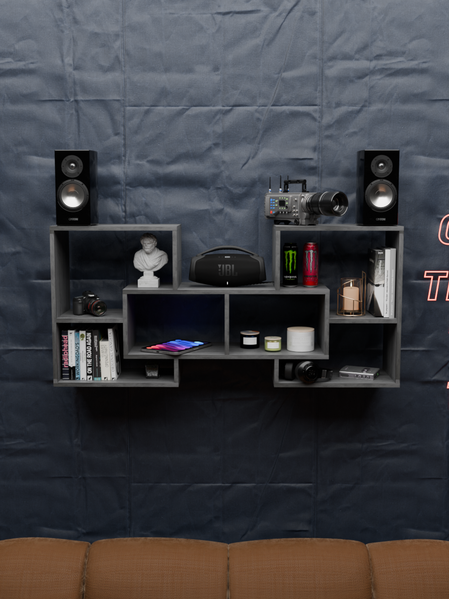 Купить Полка настенная навесная, ЛДСП, 115х55х20 см, цвета оксид серый, стиль лофт