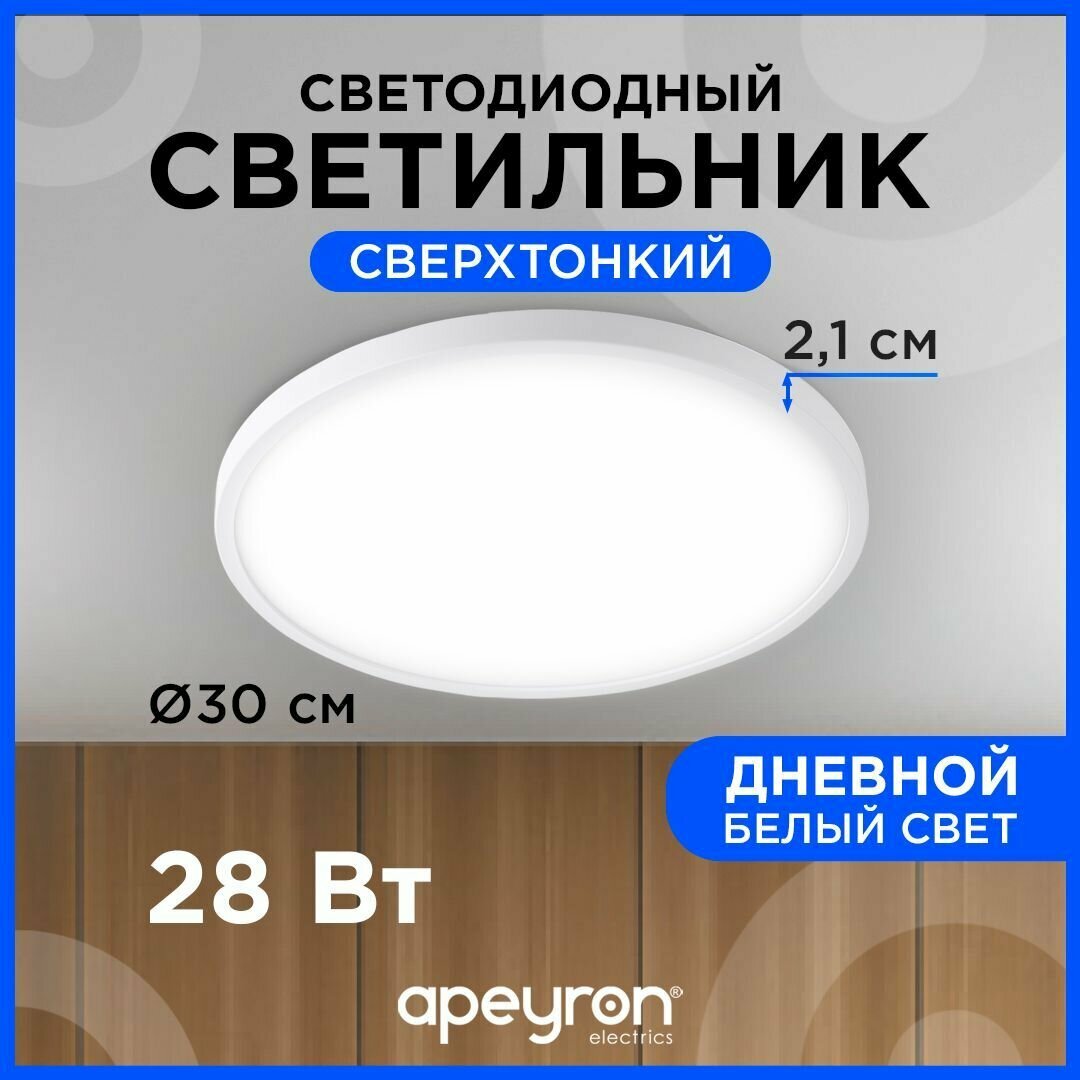Светильник потолочный светодиодный накладной Apeyron 18-130 обладает дневным цветом свечения 4000К / 2800Лм / SPIN /28Вт / белый, d300х25мм