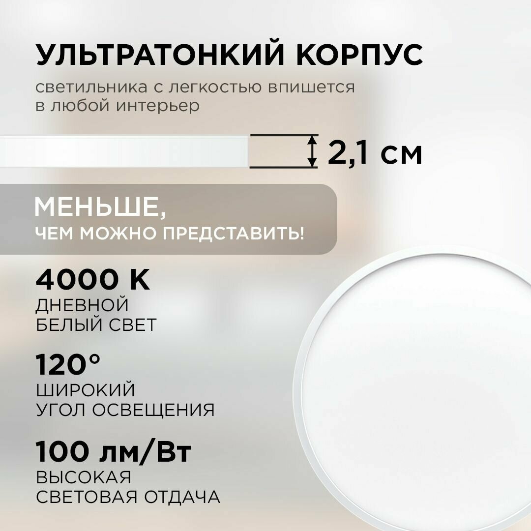 Светильник потолочный светодиодный накладной Apeyron 18-125 обладает дневным цветом свечения 4000К / 2400Лм / SPIN /24Вт / белый, d230х25мм