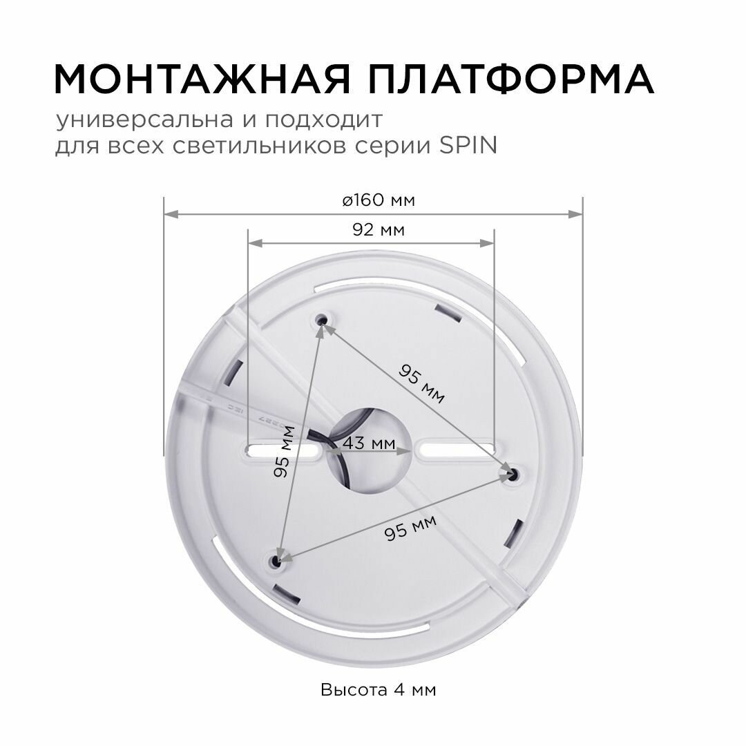 Светильник светодиодный накладной Apeyron 18-133, SPIN, 28Вт, 4000К, d300х25, черный, монтажная платформа в комплекте