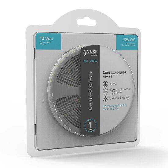 Лента LED (4000К) Basic GAUSS тип 5050 DC 12В 10Вт 700лм/Вт 60led/м IP65 10 мм (бухта 3м) (комплект 6 шт)