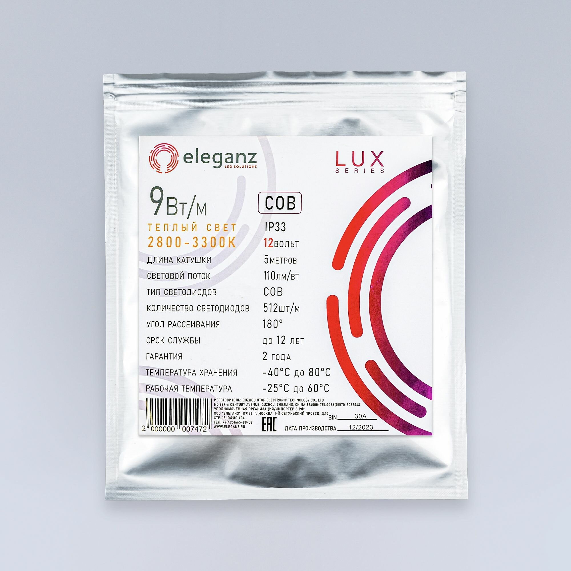 Комплект светодиодной ленты СОВ LUX "Eleganz 12В" на самоклеящейся основе, 9 Вт , 512 LED, IP33 Теплый белый свет, в упаковке 2шт. по 5 метров (10 метров)