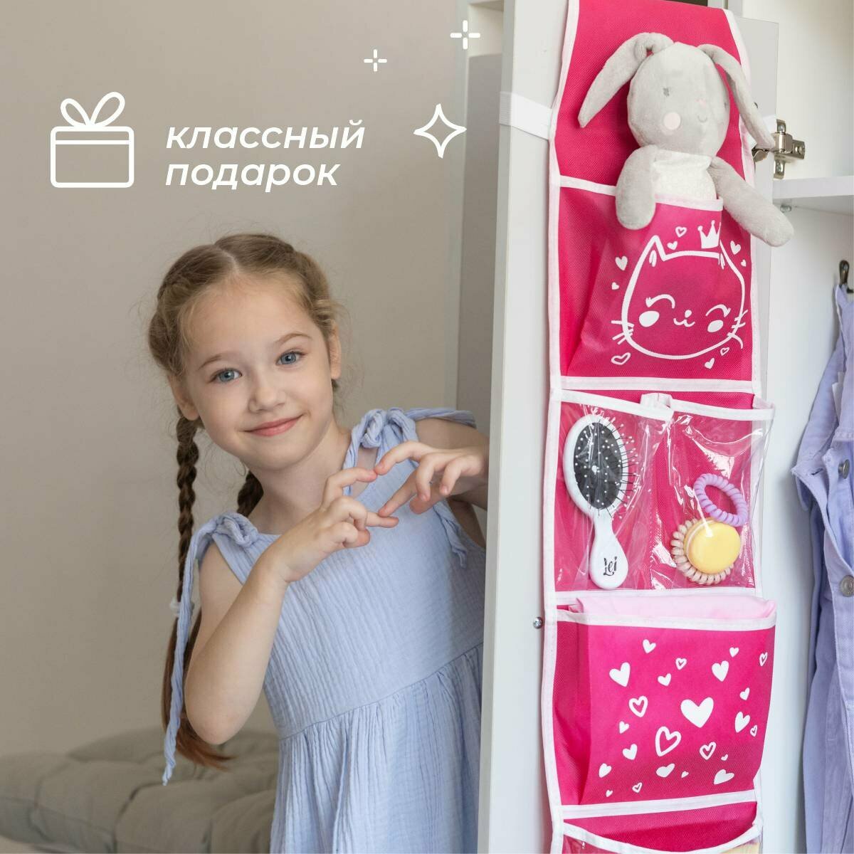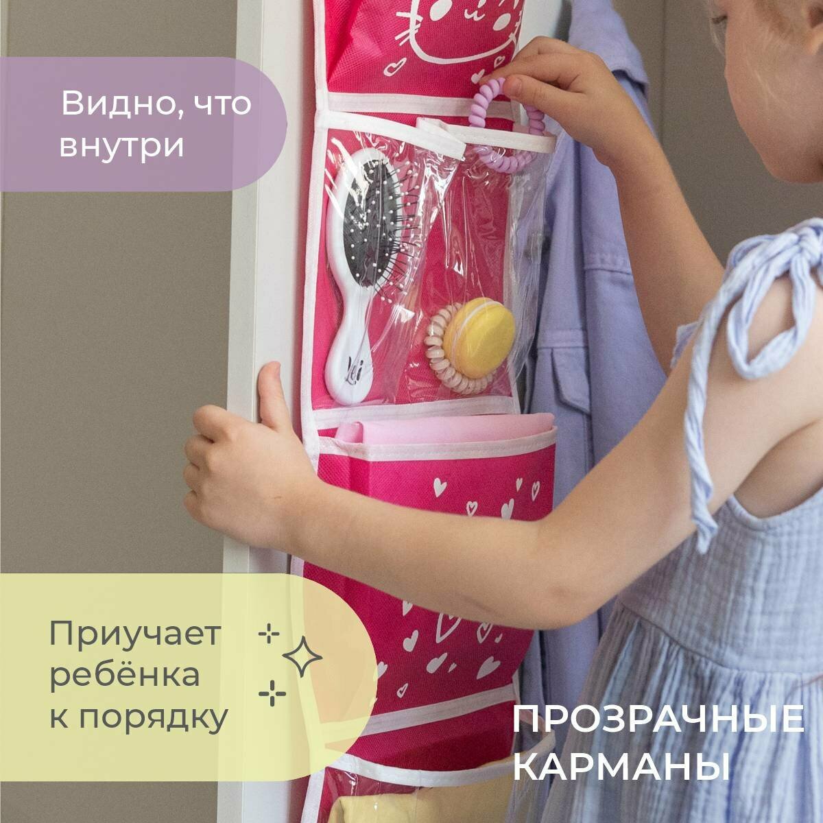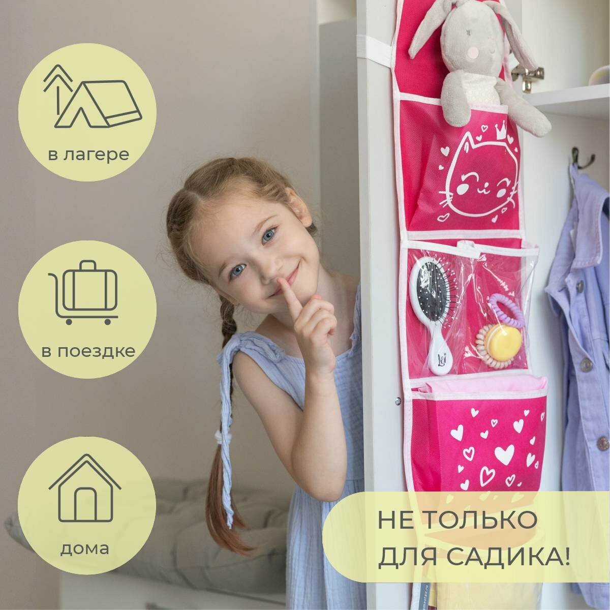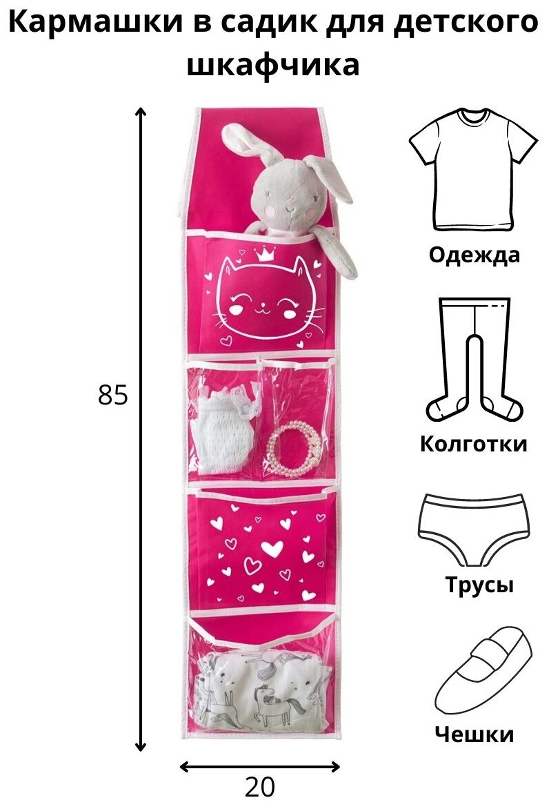 Кармашки в садик для детского шкафчика 85х20 см, Сердечки (розовые)