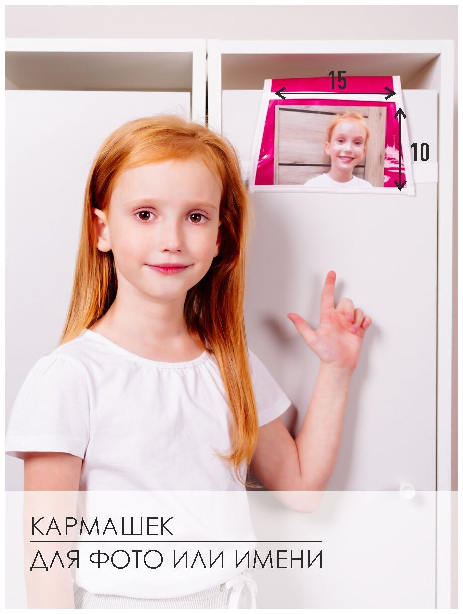 | Плюсы: | Хороший кармашек, высокое качество, отлично подошёл на шкафчик, удобно организовывает пространство и помогает не захламлять шкафчик ребёнка, есть окошко для фото |