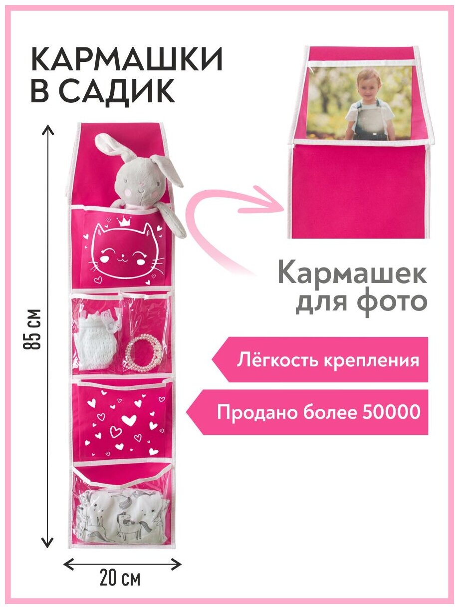 СохранитьКармашки в садик для детского шкафчика 85х20 см, Сердечки интересное: