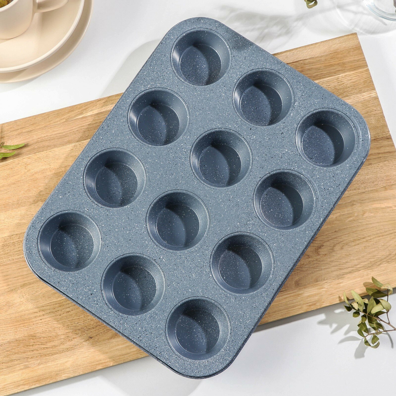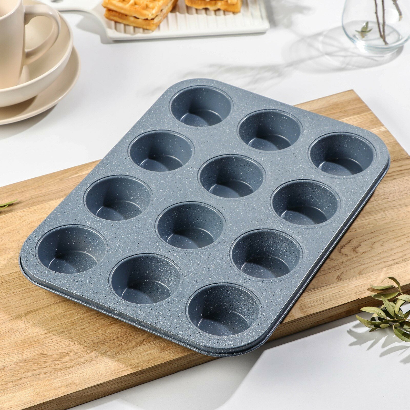 Купить Форма для выпечки Доляна «Мрамор», 35×27 см, 12 ячеек, антипригарное покрытие, цвет серый, 3792111
