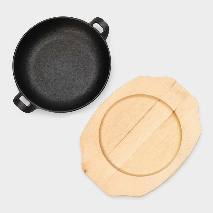 Сковорода чугунная на деревянной подставке, индукция Magma "Ансан", d= 20,3 см