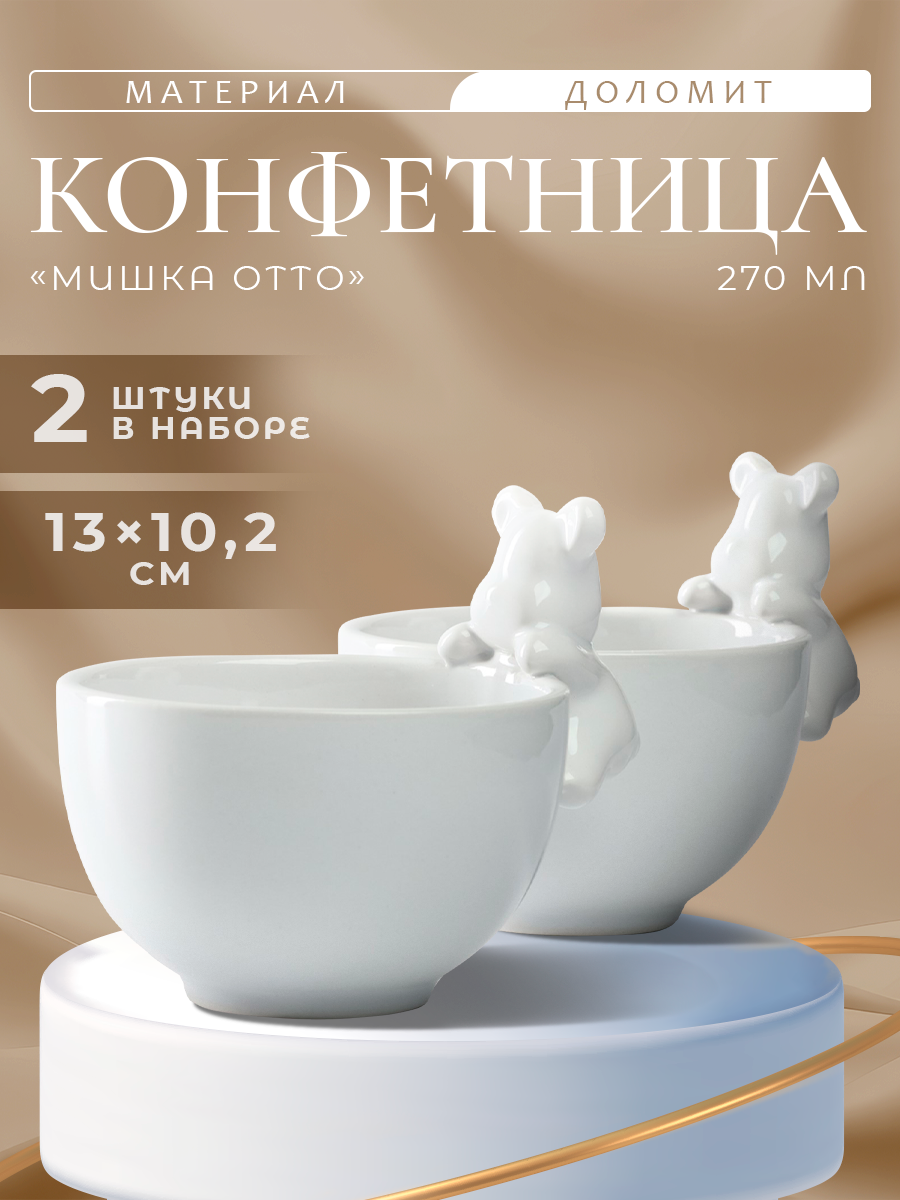 СохранитьНабор салатников керамических для подачи и сервировки 2 шт Доляна «Мишка Отто», 270 мл интересное: