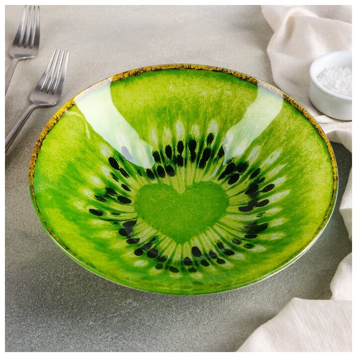 Купить Салатник стеклянный Доляна "Романтичный киви", 920 мл, 22*5 см