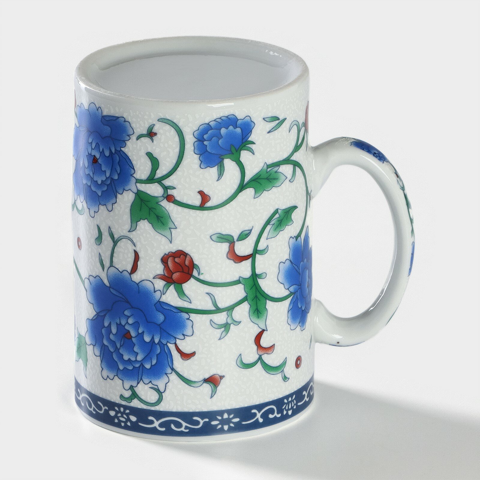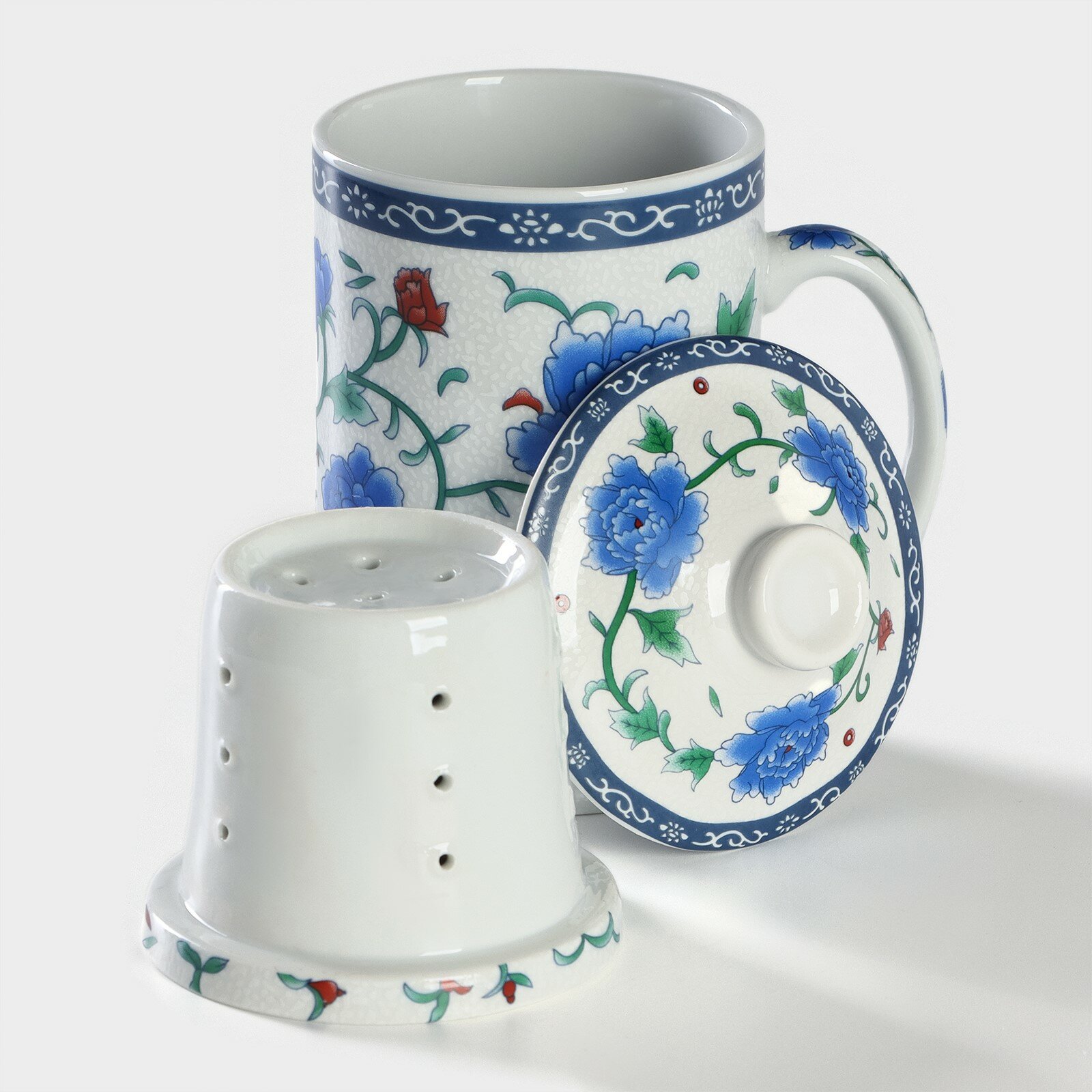 Купить Кружка керамическая с крышкой и ситом «Цветение роз», 360 мл, цвет белый
