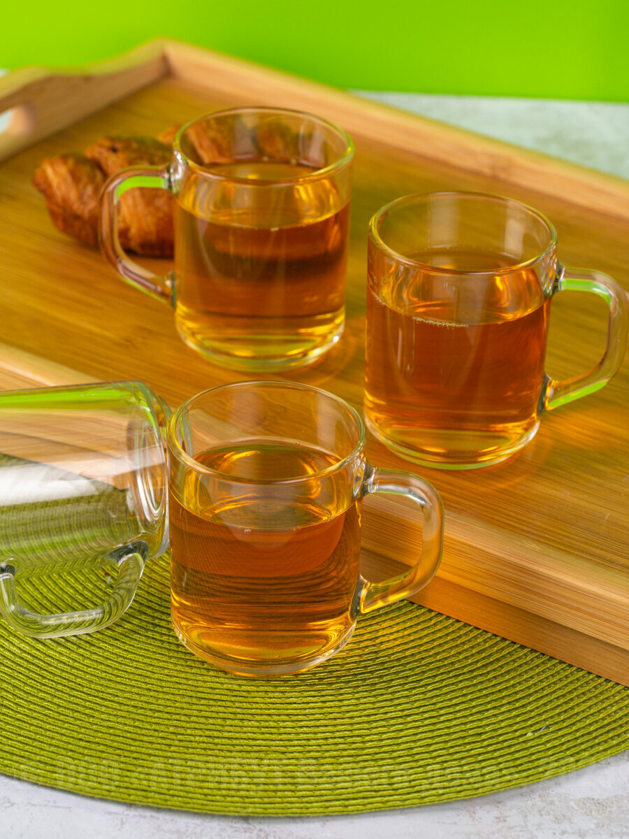 Кружка стеклянная 3 шт, с ручкой Green tea, 200 мл