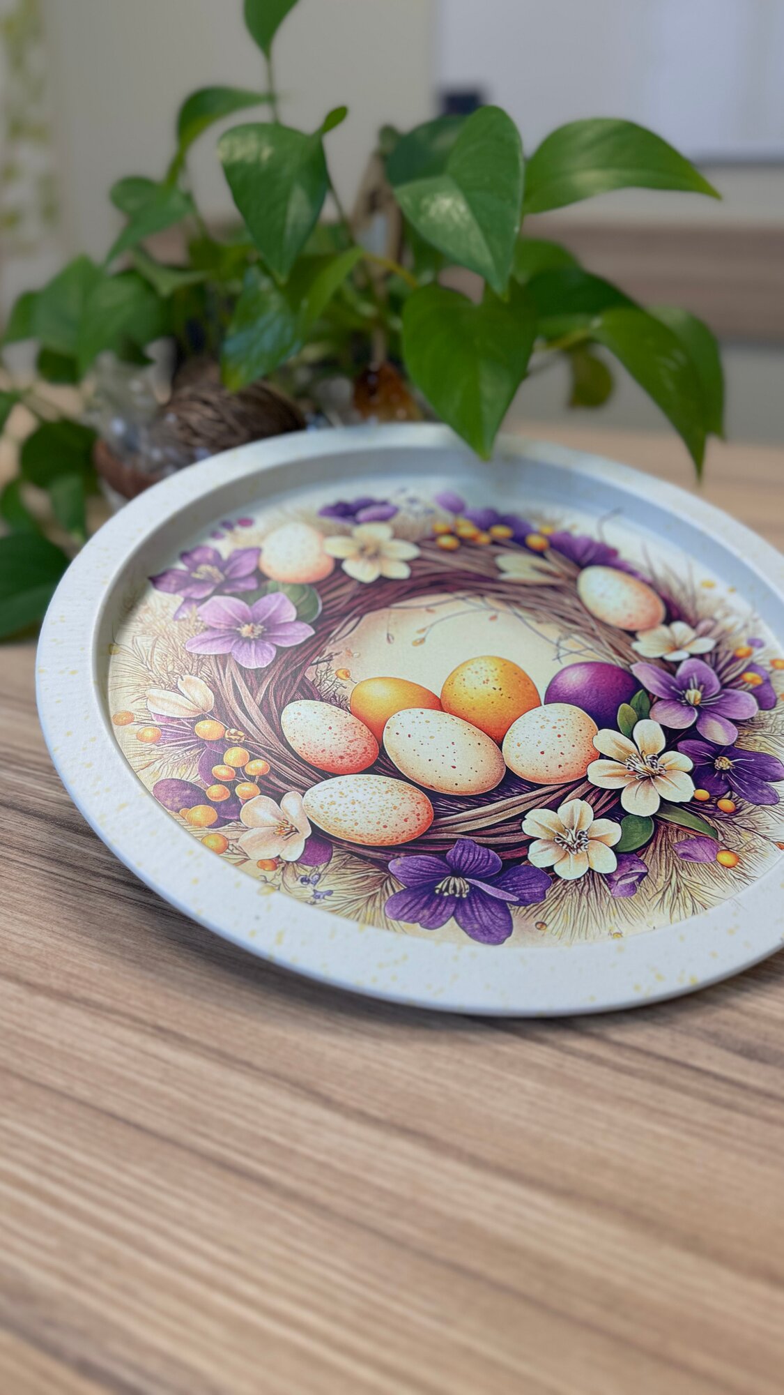 Купить Поднос пасхальный металлический круглый с бортиками декоративный 28 см PD146