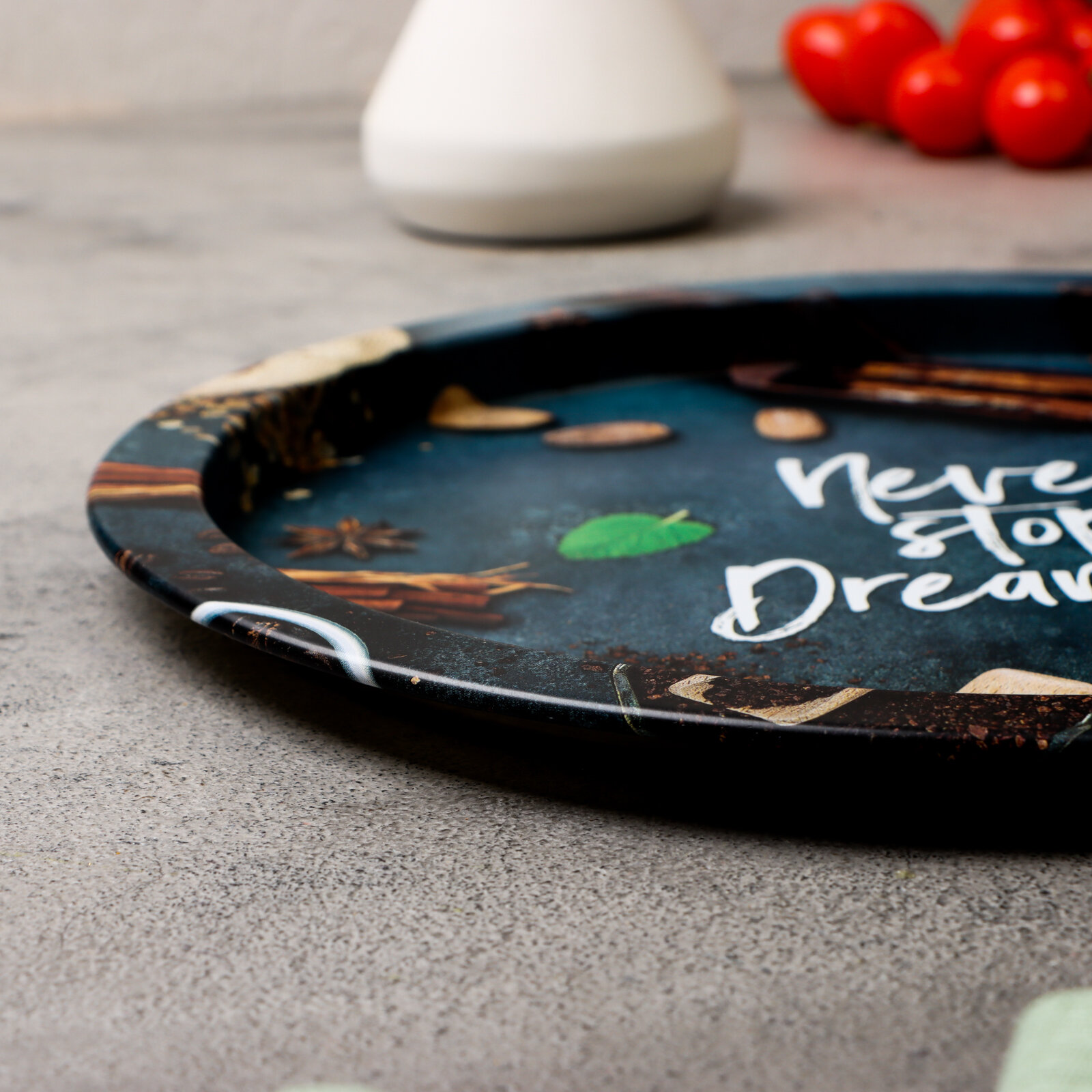 Поднос металлический круглый с бортиками декоративный 33 см PD094