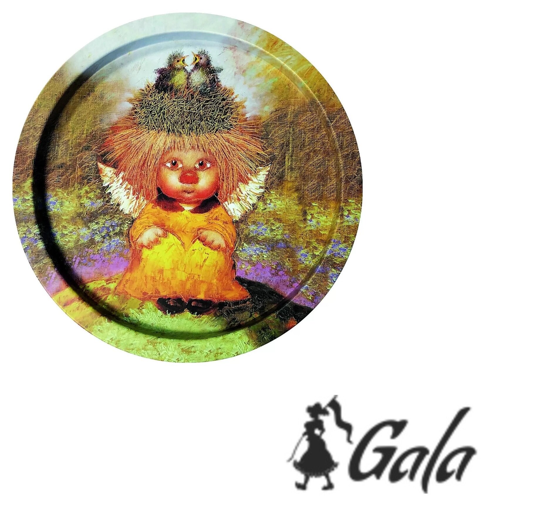Поднос GALA PD093 "Корзинка с лавандой", металл, круглый, с рисунком, диаметр 33см