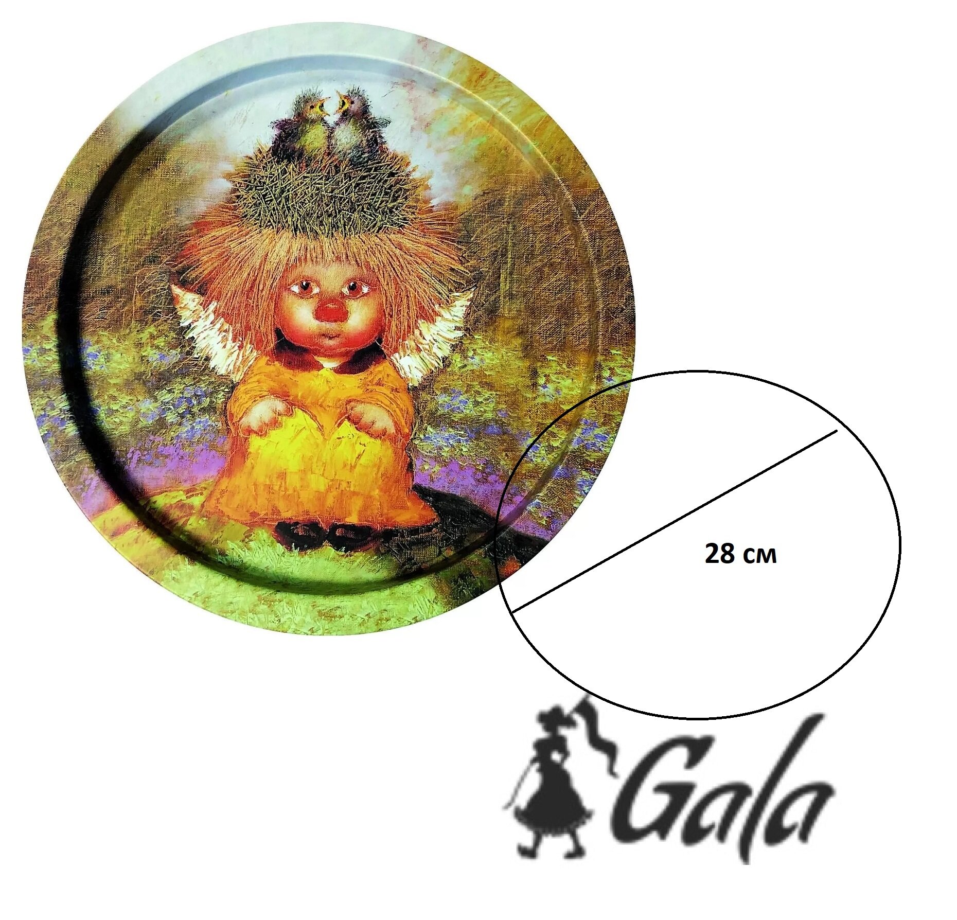 Поднос металлический круглый с бортиками декоративный 28 см PD035