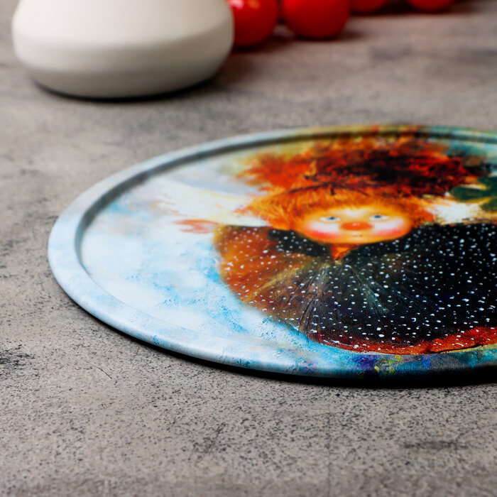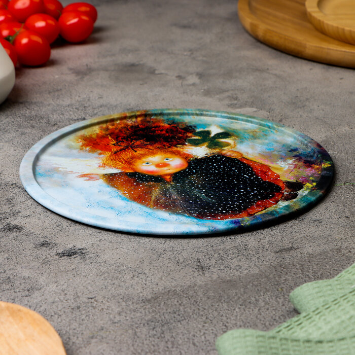 Поднос GALA "Счастливая семейка" Арт. PD032 / Поднос декоративный / Поднос кухонный / Поднос круглый