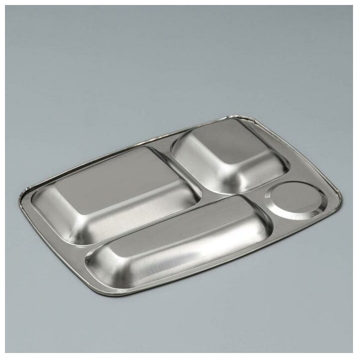 Купить Поднос, 29x20.5x2 см, 4 секции, нержавеющая сталь, серебристый