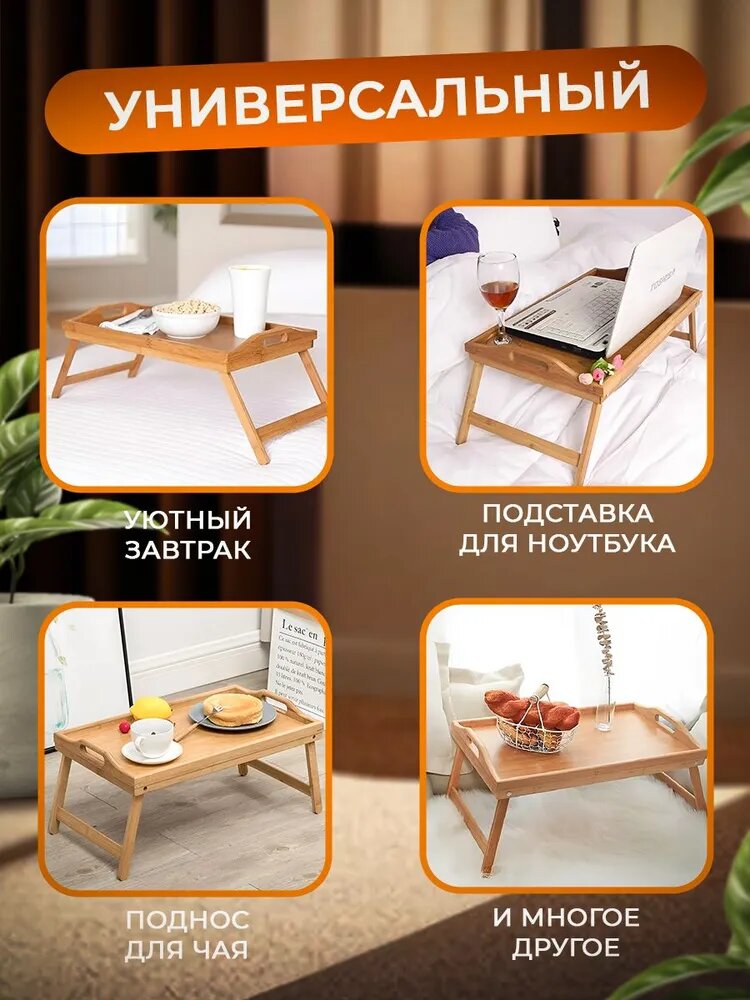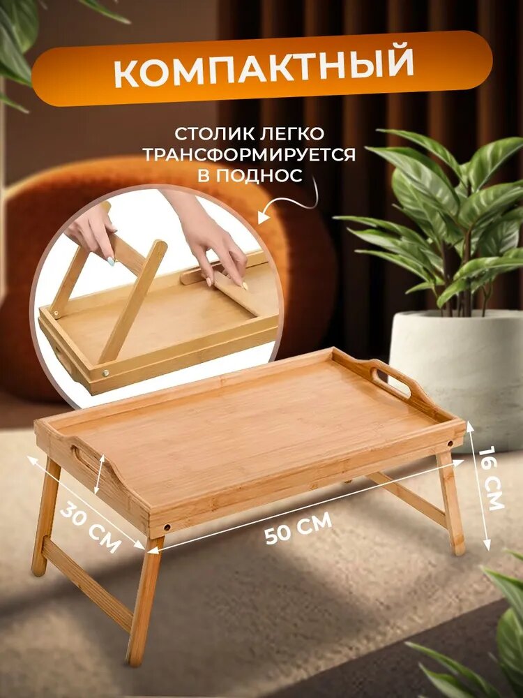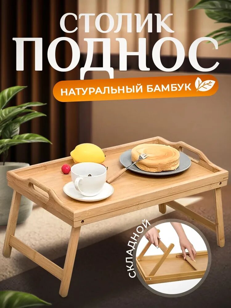 Столик-поднос для завтрака со складными ножками, натуральный бамбук интересное:
