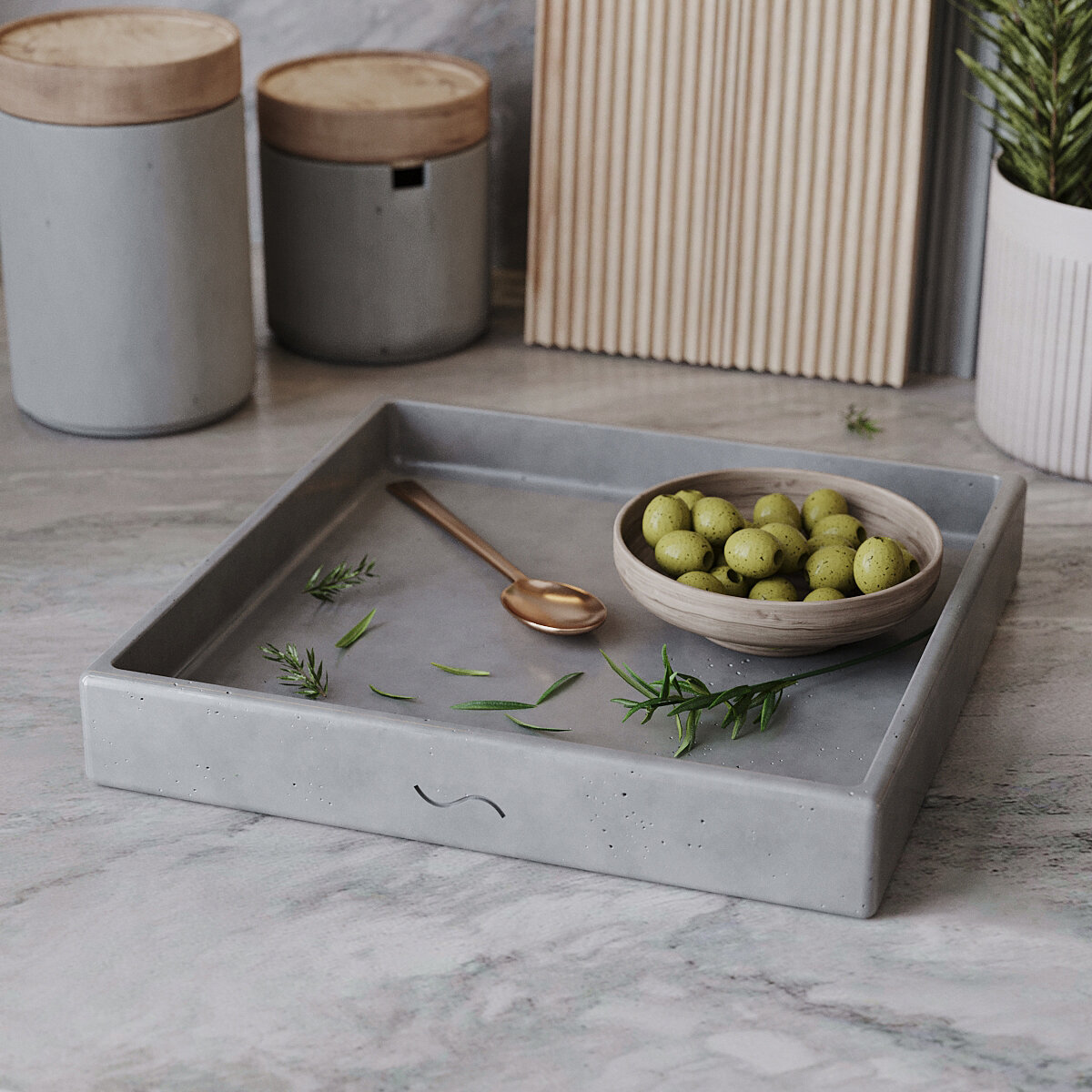 СохранитьПоднос кухонный Emily L 21x21 см, декоративная подставка, бетон, серый глянцевый интересное: