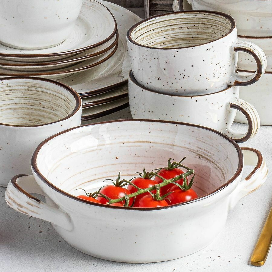 | Комплектация | 4 глубоких тарелки 350 мл, диаметр 22 см; 4 плоских тарелки диаметр 22,5 см; 1 большой салатник 1,2 л и 1 маленький салатник 750 мл |