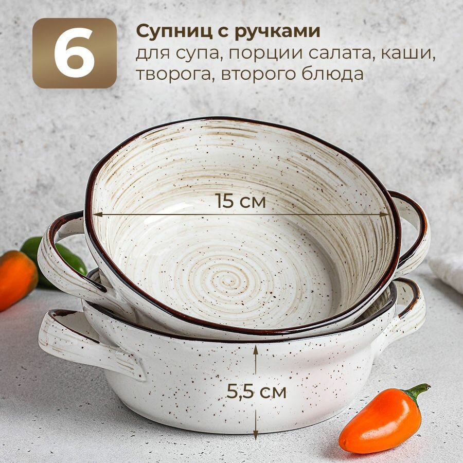 | Состав набора | салатник, супница, тарелка десертная, тарелка закусочная, тарелка обеденная, тарелка суповая, чашка |